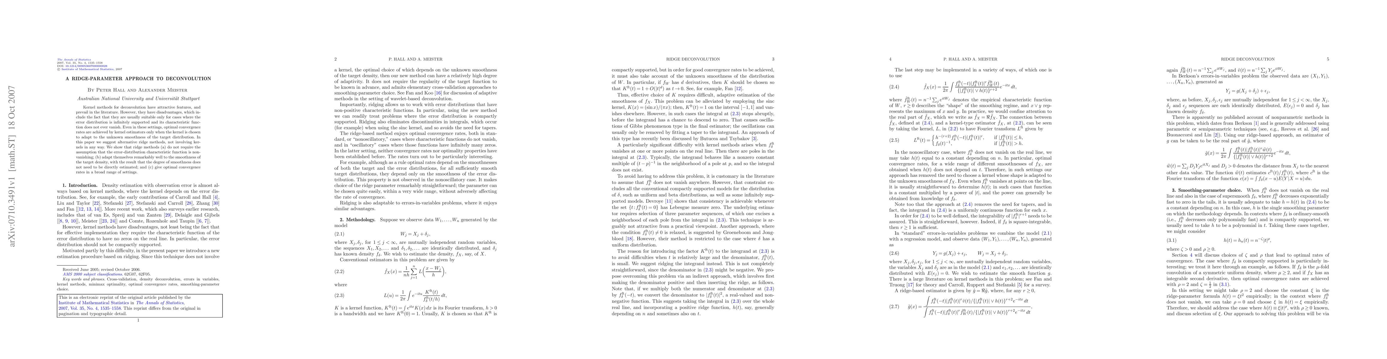 This paper proposes a new ridge-parameter approach for deconvolution, bypassing the limitations of traditional kernel methods. The authors demonstrate that ridge methods do not necessitate nonvanishing error-distribution assumptions, naturally adapt to target density smoothness, and achieve optimal convergence rates across various settings.
