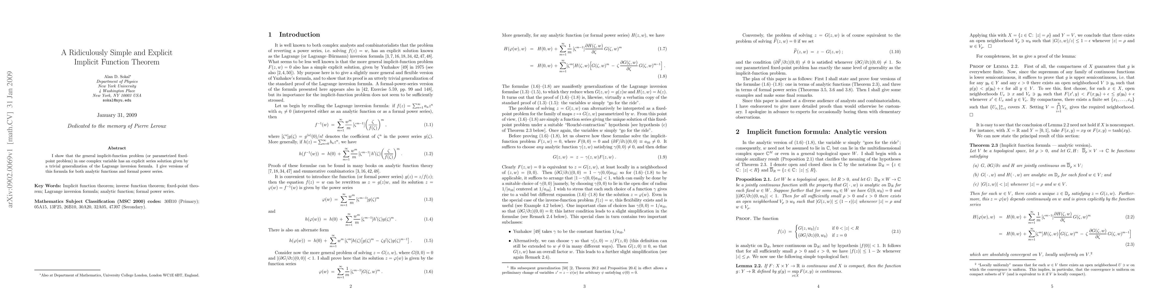 I show that the general implicit-function problem (or parametrized fixed-point problem) in one complex variable has an explicit series solution given by a trivial generalization of the Lagrange inversion formula. I give versions of this formula for both analytic functions and formal power series.