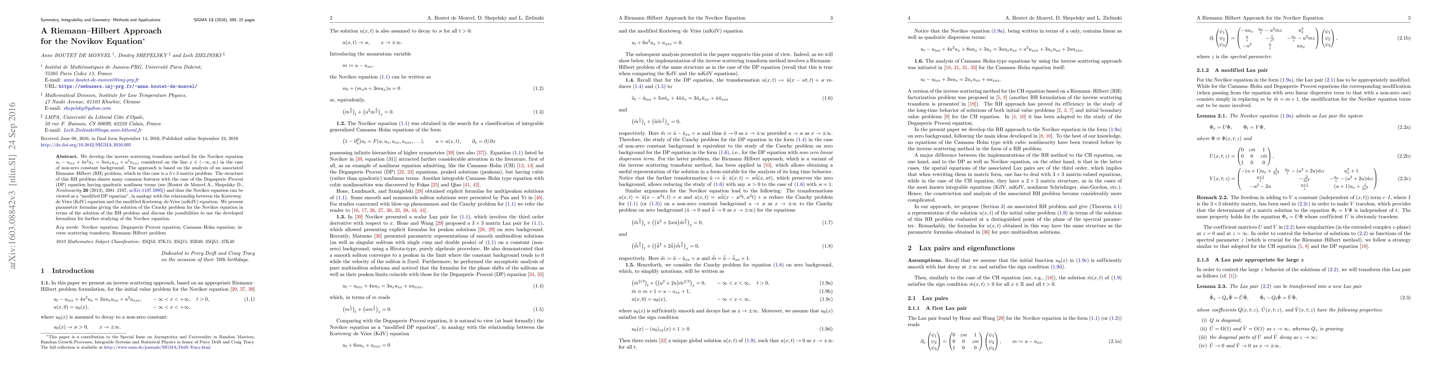 This paper develops an inverse scattering transform method for the Novikov equation using a Riemann-Hilbert approach, presenting parametric formulas for its solution and drawing parallels to the Degasperis-Procesi equation. The developed formalism offers potential for further study of the Novikov equation.