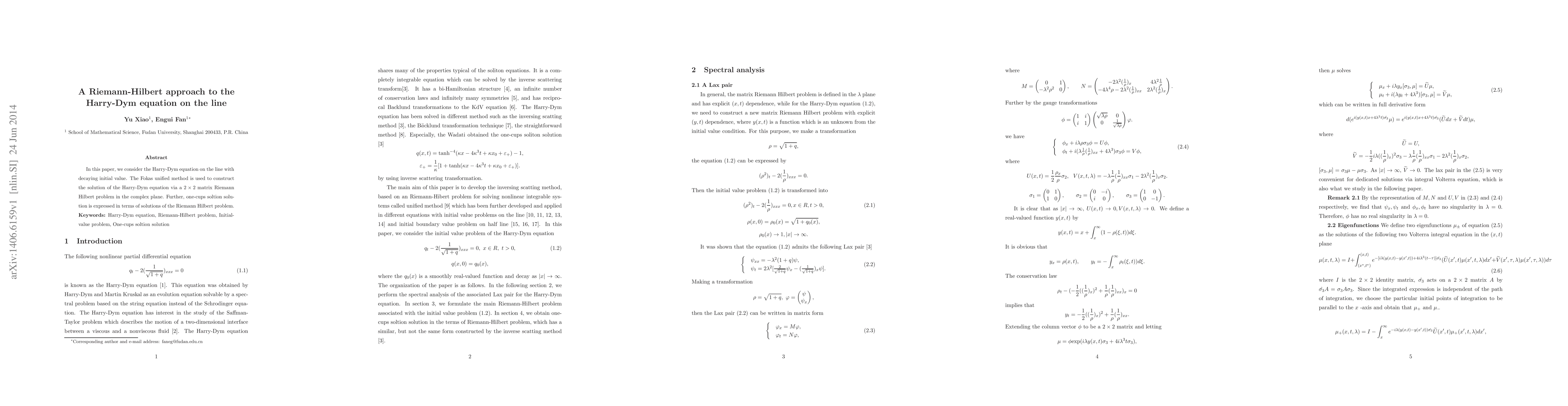 This paper employs the Fokas unified method to solve the Harry-Dym equation on the line using a $2 \times 2$ matrix Riemann-Hilbert problem, expressing the one-cup solution in terms of the solution of the Riemann-Hilbert problem.