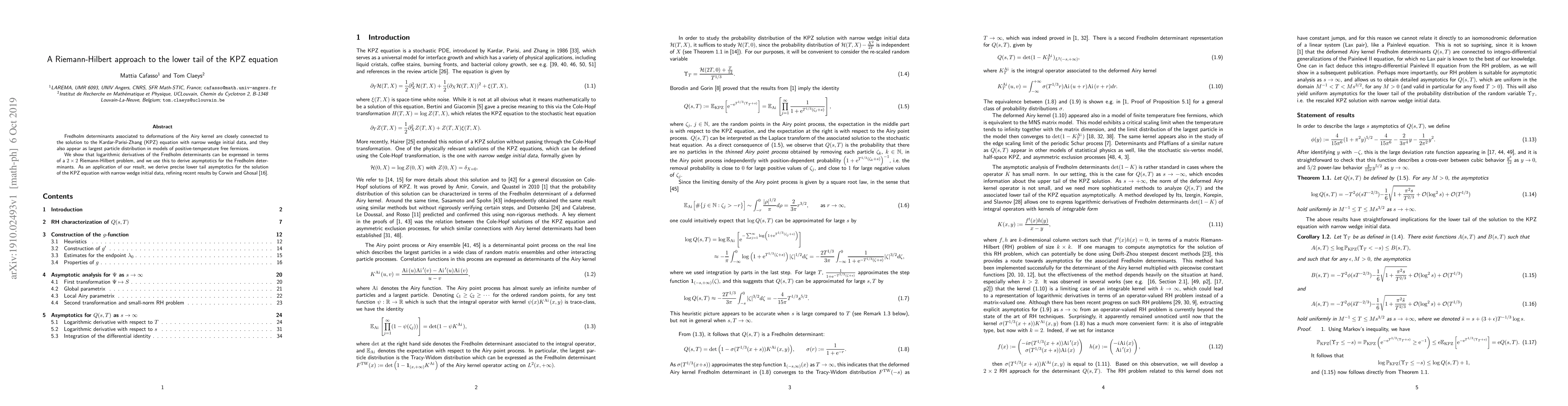 This paper employs a Riemann-Hilbert approach to derive asymptotics for Fredholm determinants linked to the KPZ equation with narrow wedge initial data. The study refines previous lower tail asymptotics, providing a more precise understanding of the KPZ equation's behavior.