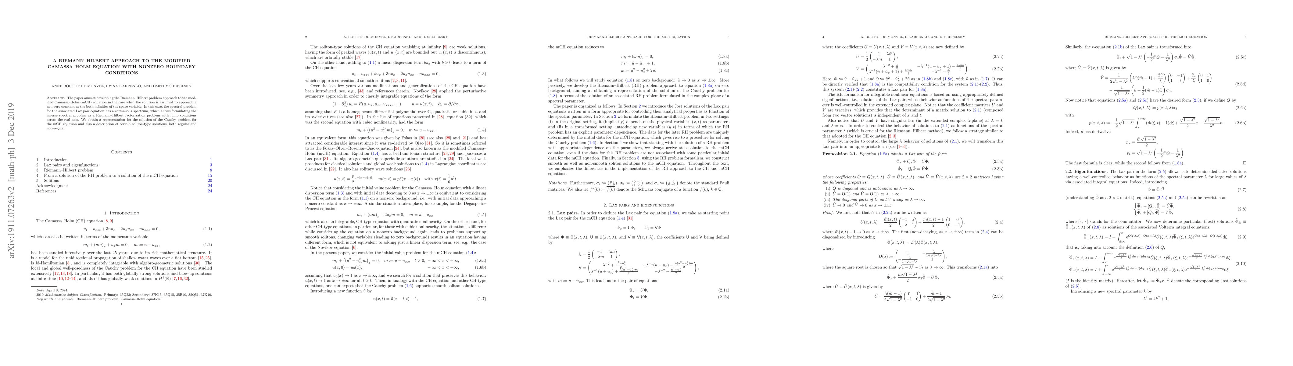 The paper develops a Riemann-Hilbert approach to solve the modified Camassa-Holm equation with non-zero boundary conditions, deriving solutions and characterizing soliton-type solutions through spectral analysis and factorization.
