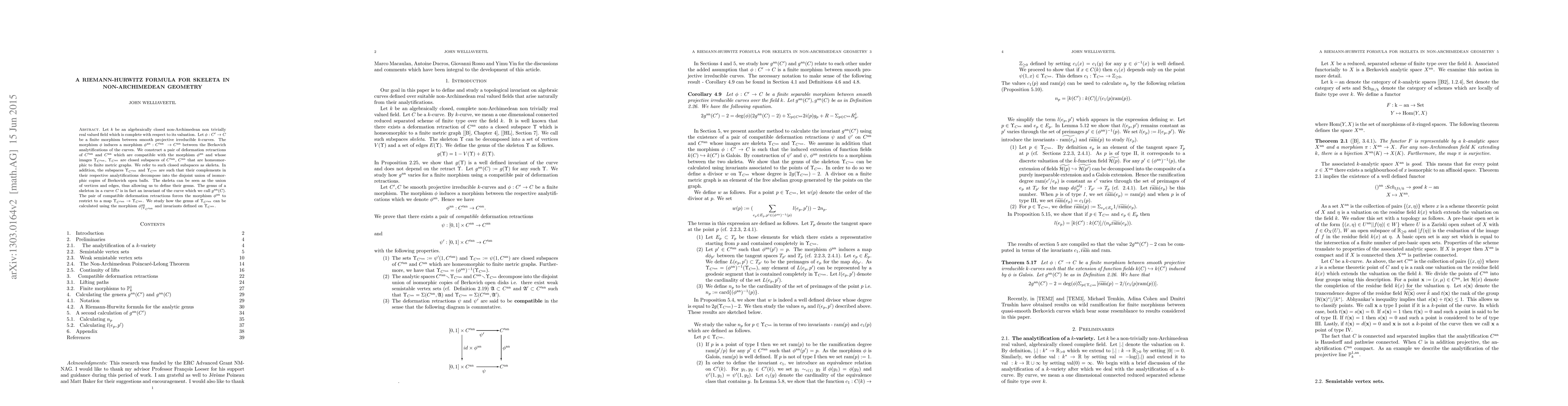 This paper constructs deformation retractions of analytified curves in non-archimedean geometry to skeleta, finite metric graphs, and derives a Riemann-Hurwitz formula for calculating the genus of the skeleta using the morphism between the curves.