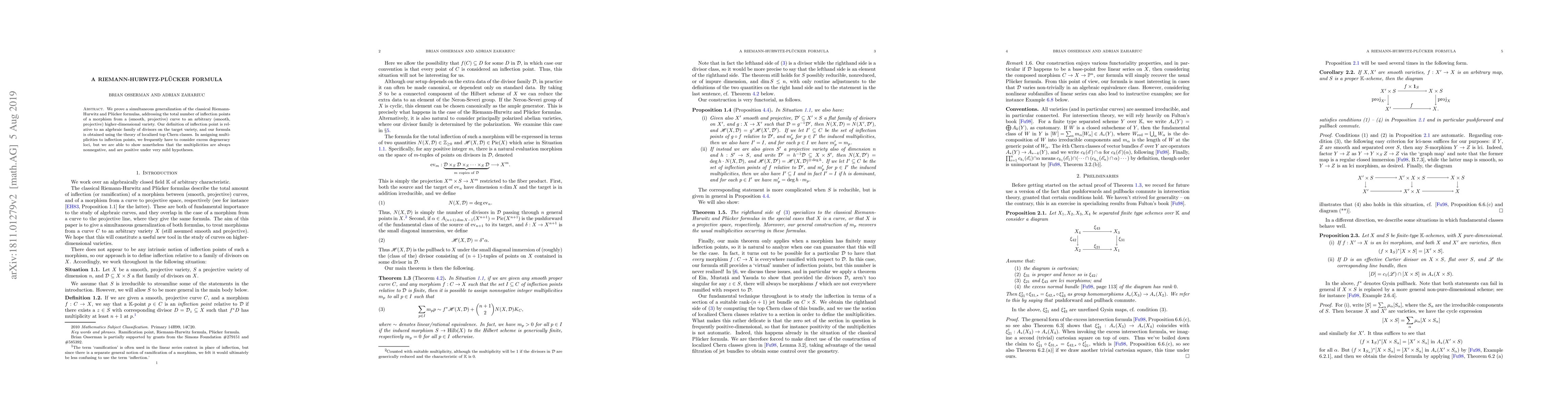 We prove a simultaneous generalization of the classical Riemann-Hurwitz and Plucker formulas, addressing the total inflection of a morphism from a (smooth, projective) curve to an arbitrary (smooth, projective) higher-dimensional variety. Our definition of ramification is relative to an algebraic family of divisors on the target variety, and our formula is obtained using the theory of refined top Chern classes. In assigning multiplicities to ramification points, we frequently have to consider excess degeneracy loci, but we are able to show nonetheless that the multiplicities are always nonnegative, and are positive under very mild hypotheses.