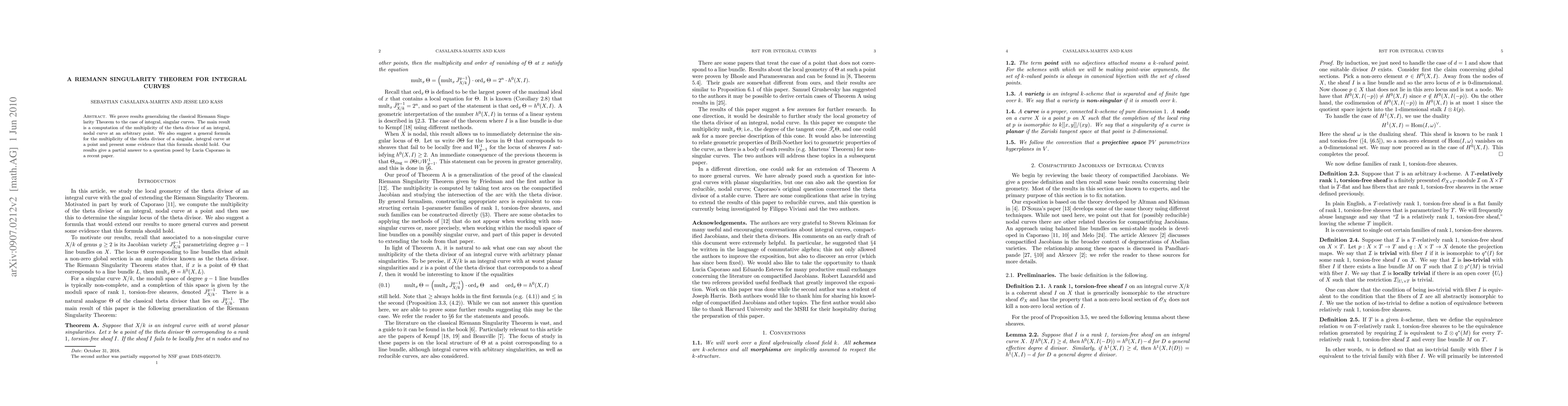 This paper generalizes the Riemann Singularity Theorem to integral, singular curves, computing the multiplicity of the theta divisor at any point. It also proposes a conjecture for a general formula for theta divisor multiplicities on singular integral curves, providing initial evidence.