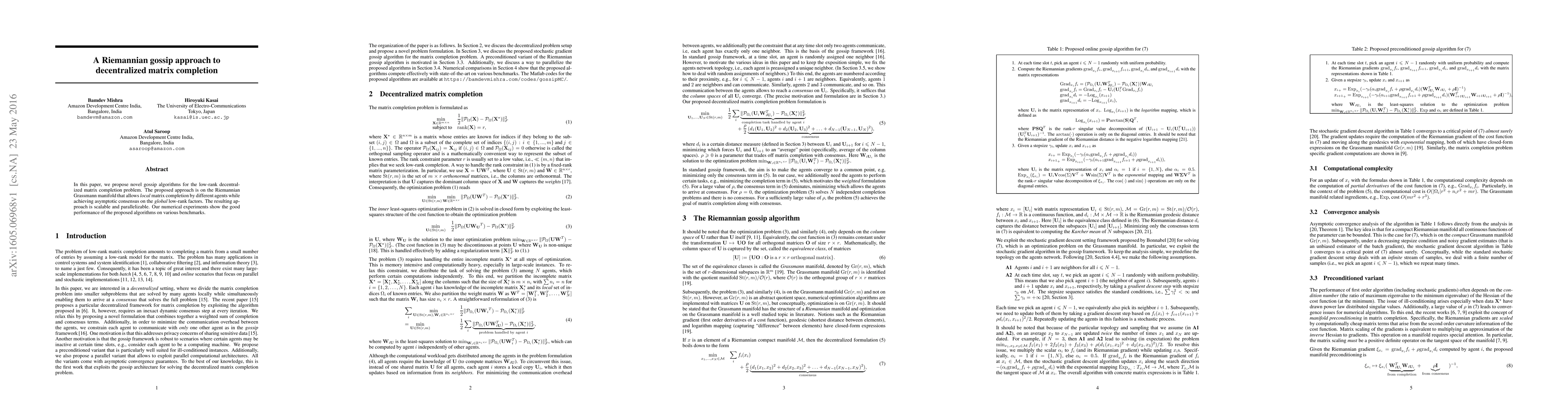 Researchers propose a novel gossip algorithm for decentralized matrix completion on the Riemannian Grassmann manifold, achieving scalable and parallelizable solutions with asymptotic consensus.