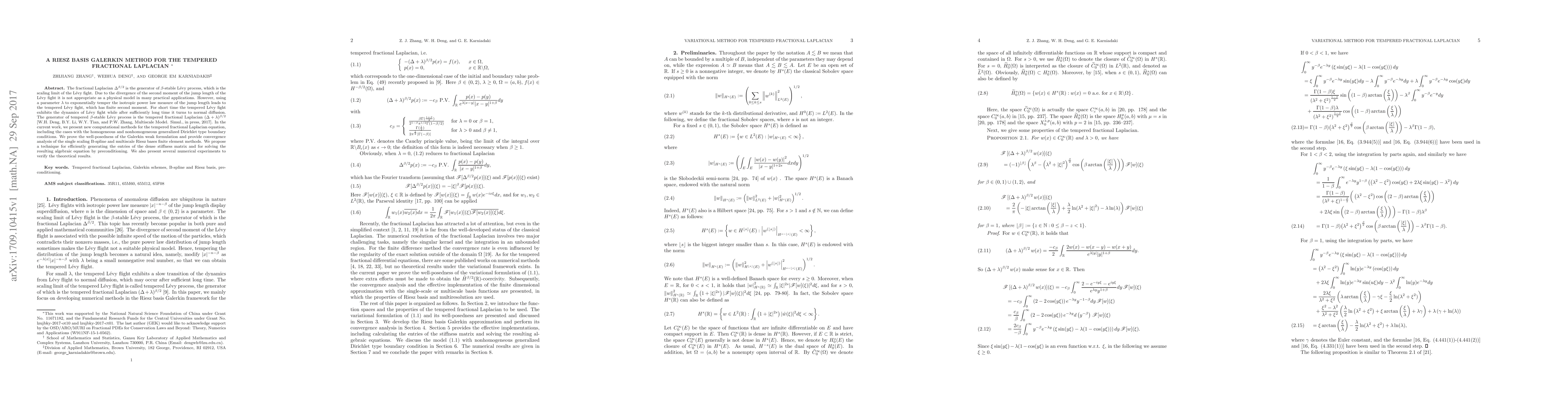 A new method for solving tempered fractional Laplacian equations is presented, including a Galerkin weak formulation and finite element methods that ensure convergence and well-posedness, applicable to physical models with finite second moment.