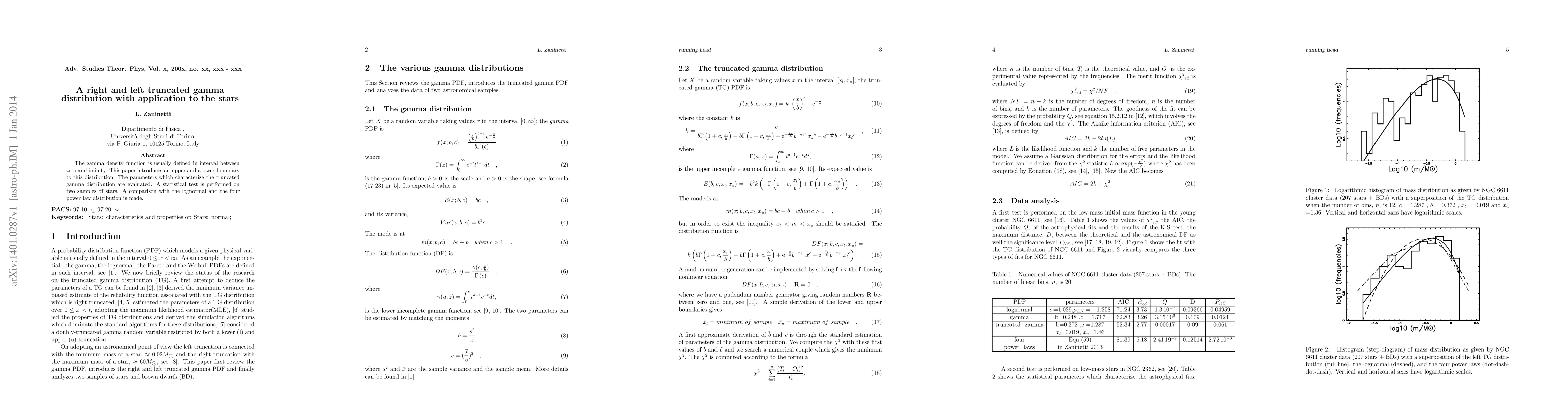 This paper introduces a right and left truncated gamma distribution, evaluating its parameters and applying it to a statistical test on two star samples. It compares the truncated gamma model with lognormal and four power law distributions.