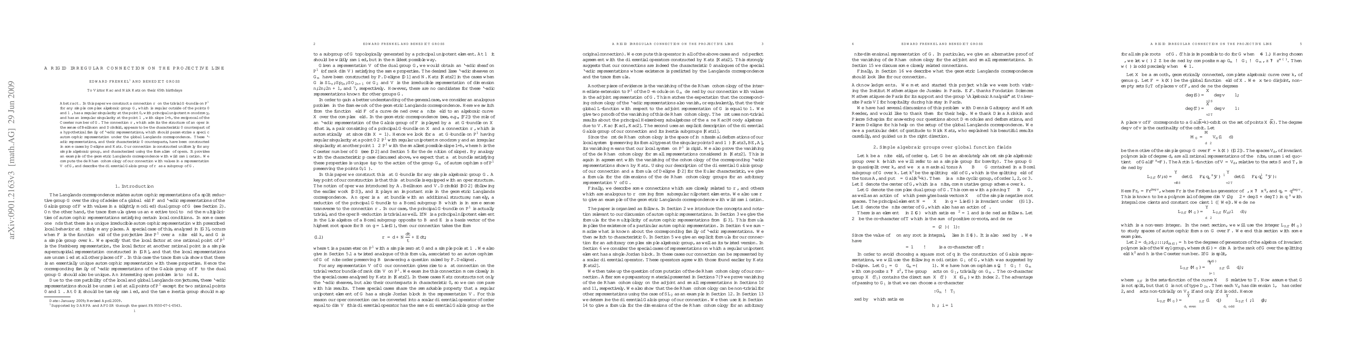 Researchers construct a connection on the projective line for simple complex algebraic groups G, with characteristics including regular singularities at 0 and infinity, and ties to Langlands correspondence.