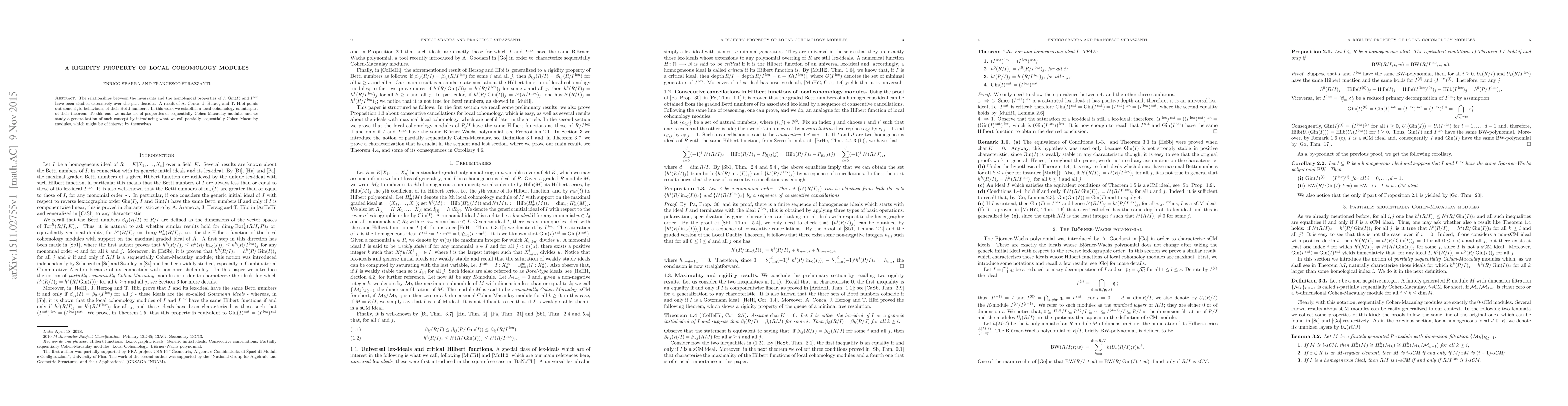 The relationships between the invariants and the homological properties of $I$, ${\rm Gin}(I)$ and $I^{\rm lex}$ have been studied extensively over the past decades. A result of A. Conca, J. Herzog and T. Hibi points out some rigid behaviours of their Betti numbers. In this work we establish a local cohomology counterpart of their theorem. To this end, we make use of properties of sequentially Cohen-Macaulay modules and we study a generalization of such concept by introducing what we call partially sequentially Cohen-Macaulay modules, which might be of interest by themselves.