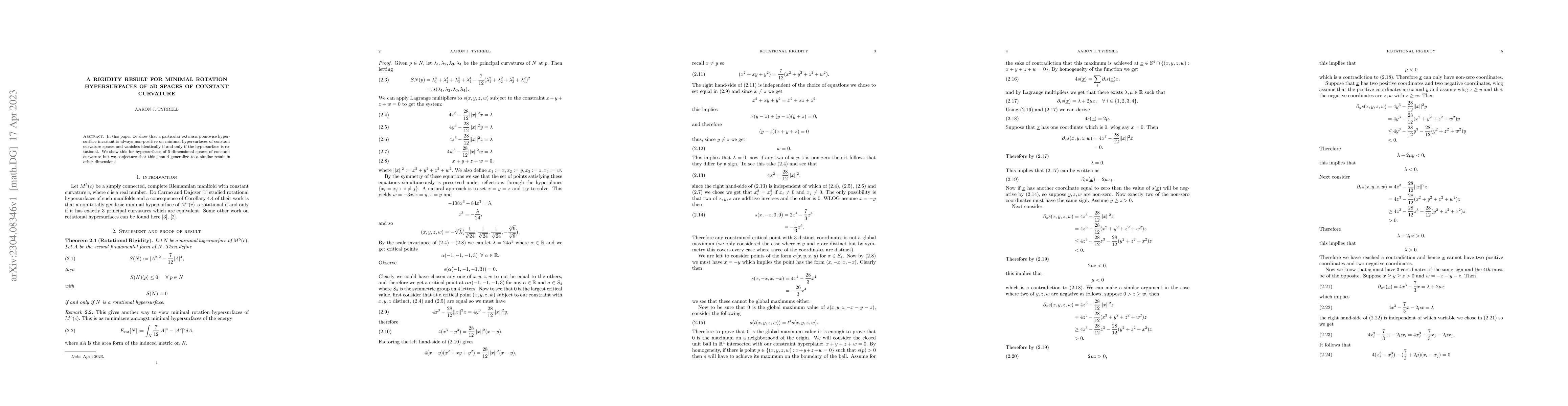 This paper demonstrates that a specific extrinsic invariant is non-positive on minimal rotation hypersurfaces in 5D spaces of constant curvature, vanishing only if the hypersurface is rotational. The authors conjecture this result may extend to other dimensions.