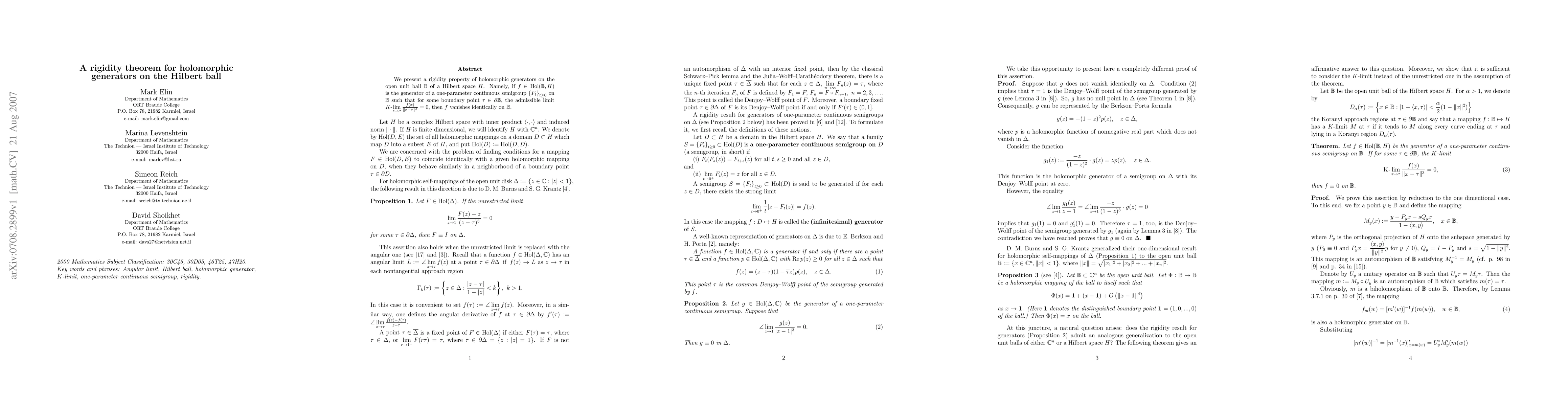 This paper establishes a rigidity theorem for holomorphic generators on the open unit ball in a Hilbert space, proving that if a holomorphic generator of a semigroup satisfies a certain boundary limit condition, it must vanish identically on the ball.