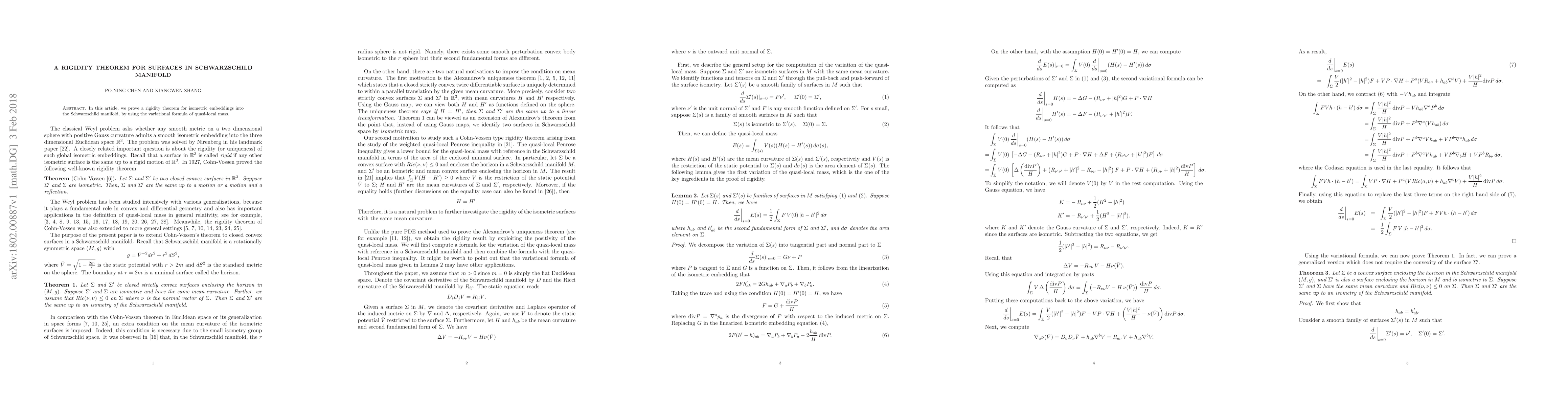 Summary: This paper establishes a rigidity theorem for isometric embeddings of surfaces in the Schwarzschild manifold, leveraging the variational formula of quasi-local mass to demonstrate the uniqueness of such embeddings.