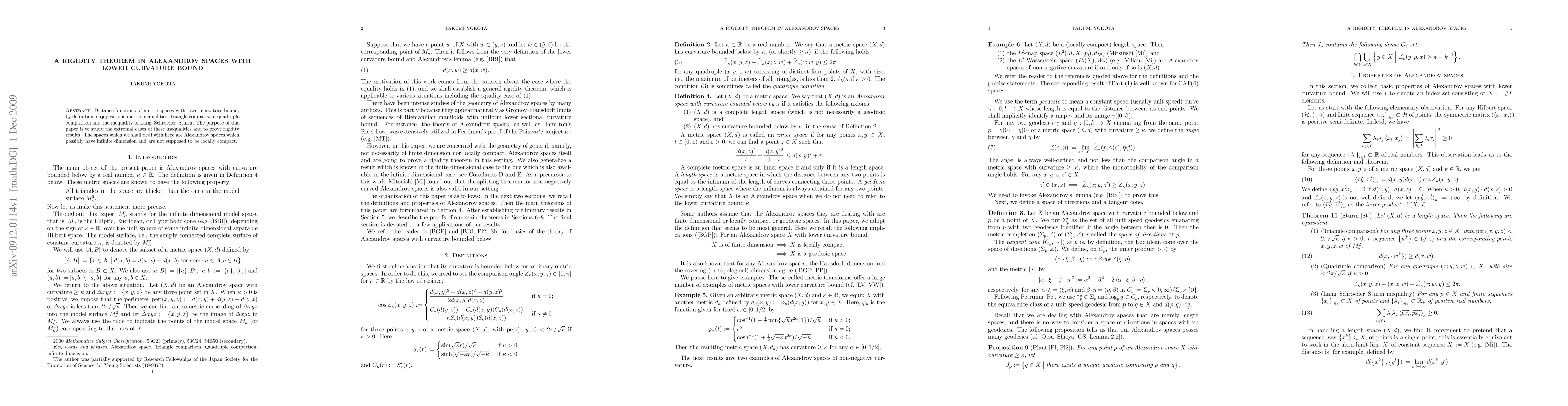 This paper investigates extremal cases of metric inequalities in Alexandrov spaces with a lower curvature bound and proves rigidity results for these spaces, which may have infinite dimension and are not necessarily locally compact. The findings contribute to understanding the geometric structure of such spaces.