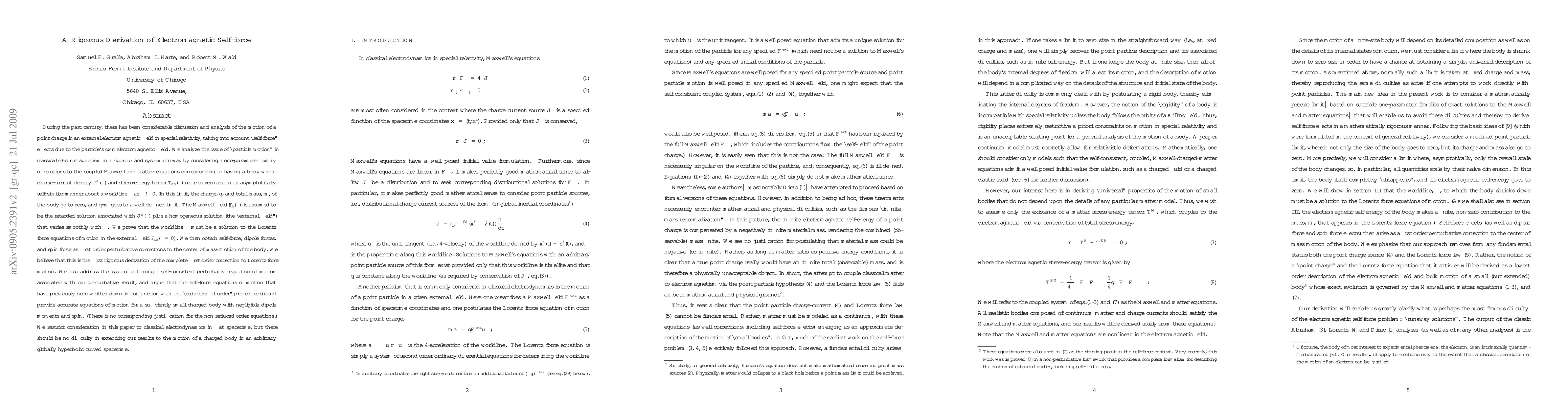 This paper rigorously derives the electromagnetic self-force affecting the motion of a point charge by analyzing a one-parameter family of solutions to coupled Maxwell and matter equations. It concludes that the worldline motion is governed by Lorentz force equations, supplemented by first-order perturbative corrections for self-force, dipole forces, and spin forces.