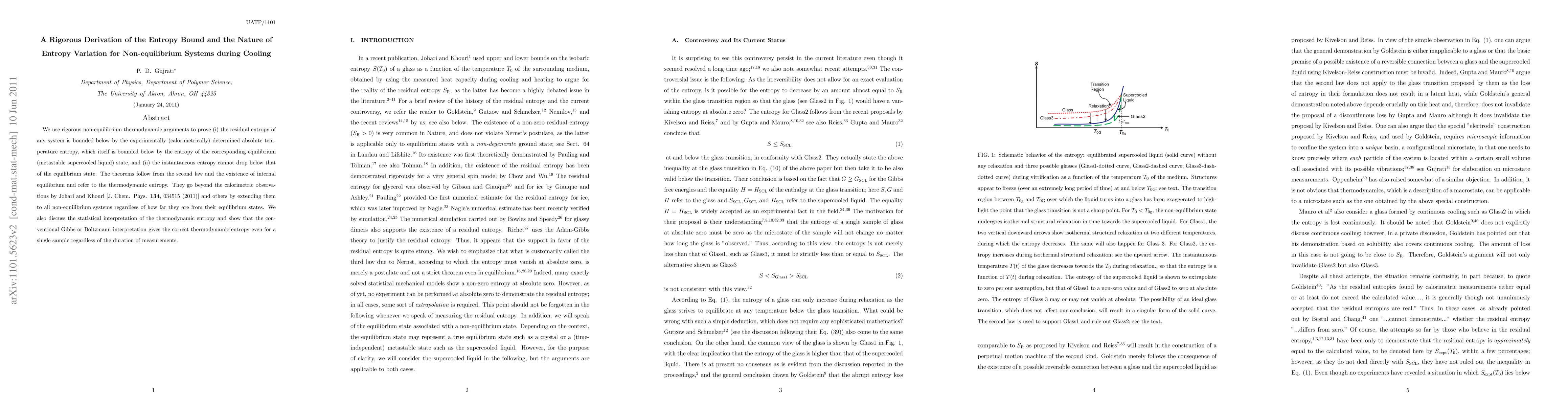This paper rigorously proves that the residual entropy in non-equilibrium systems is bounded below by the equilibrium state entropy, extending beyond calorimetric observations. It also confirms that the thermodynamic entropy remains consistent with the Gibbs or Boltzmann interpretation, regardless of measurement duration.