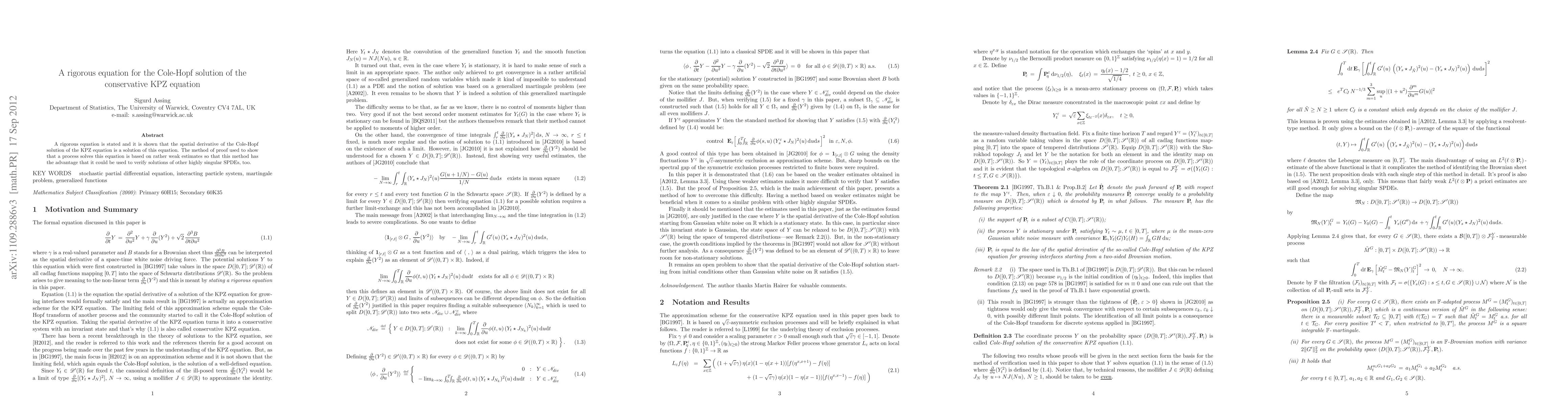 Researchers developed a rigorous equation for the Cole-Hopf solution of the KPZ equation, showing that its spatial derivative satisfies this new equation. This method can potentially verify solutions to other highly singular SPDEs with weak estimates.