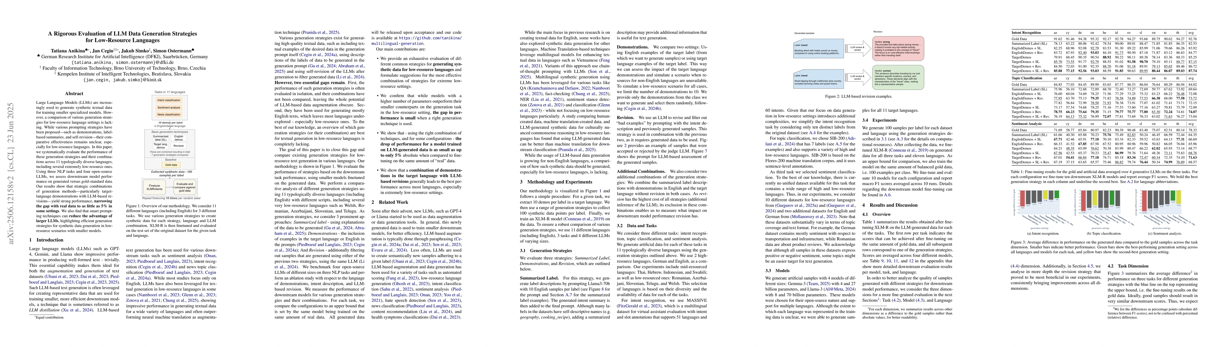 Large Language Models (LLMs) are increasingly used to generate synthetic textual data for training smaller specialized models. However, a comparison of various generation strategies for low-resource language settings is lacking. While various prompting strategies have been proposed, such as demonstrations, label-based summaries, and self-revision, their comparative effectiveness remains unclear, especially for low-resource languages. In this paper, we systematically evaluate the performance of these generation strategies and their combinations across 11 typologically diverse languages, including several extremely low-resource ones. Using three NLP tasks and four open-source LLMs, we assess downstream model performance on generated versus gold-standard data. Our results show that strategic combinations of generation methods, particularly target-language demonstrations with LLM-based revisions, yield strong performance, narrowing the gap with real data to as little as 5% in some settings. We also find that smart prompting techniques can reduce the advantage of larger LLMs, highlighting efficient generation strategies for synthetic data generation in low-resource scenarios with smaller models.