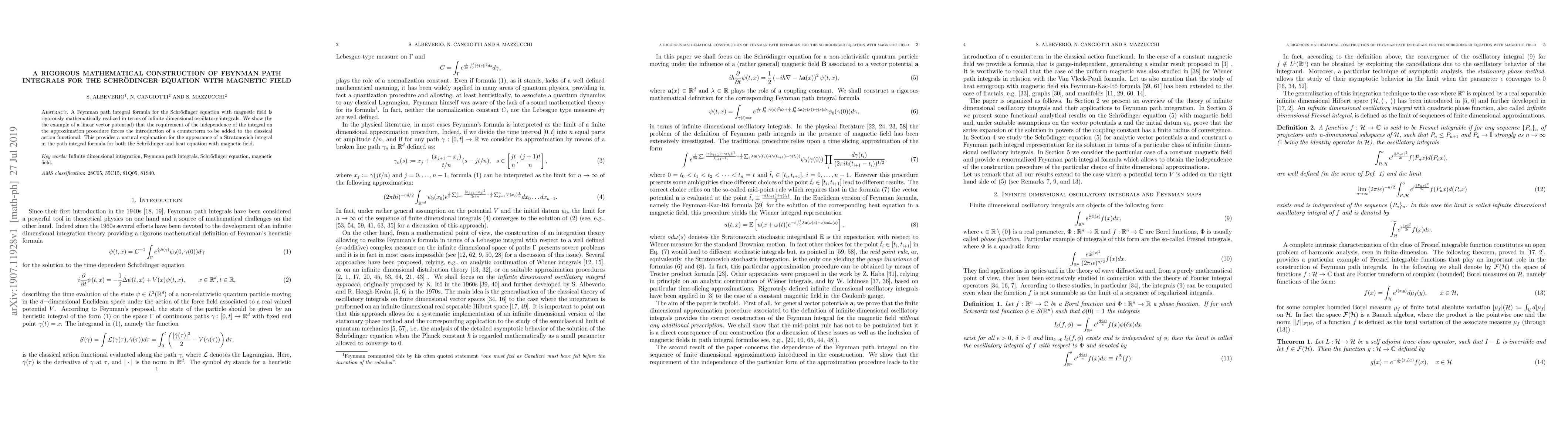 This paper rigorously constructs Feynman path integrals for the Schrödinger equation with magnetic fields using infinite-dimensional oscillatory integrals. It demonstrates the necessity of a counterterm in the classical action to ensure independence from the approximation method, explaining the appearance of Stratonovich integrals in both Schrödinger and heat equations with magnetic fields.