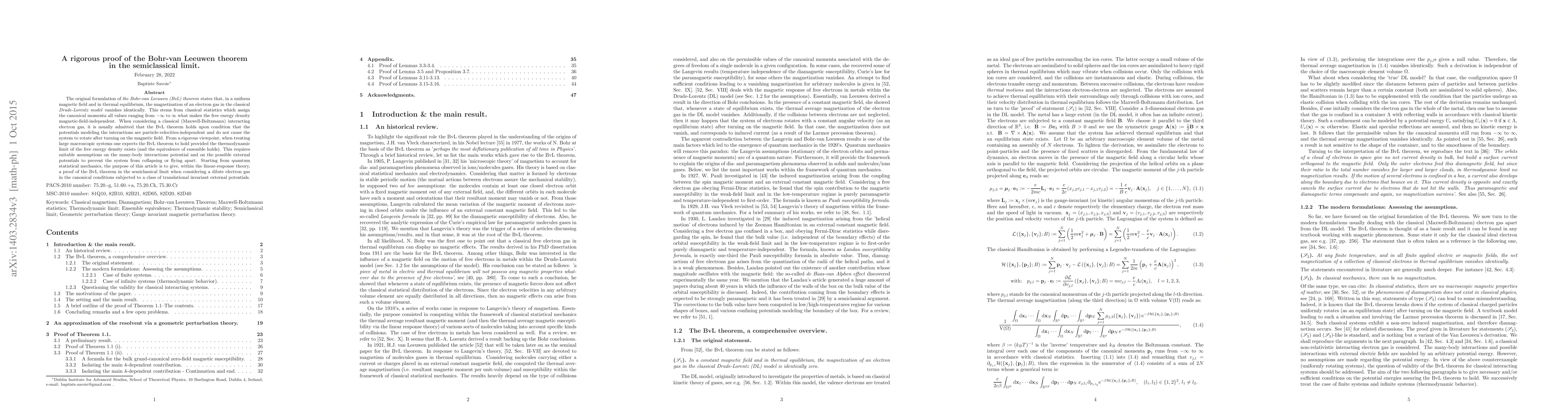 This paper rigorously proves the Bohr-van Leeuwen theorem in the semiclassical limit for a dilute electron gas in the classical Drude-Lorentz model, showing that the magnetization vanishes in a uniform magnetic field at thermal equilibrium, provided the interactions are velocity-independent and the system remains stable.