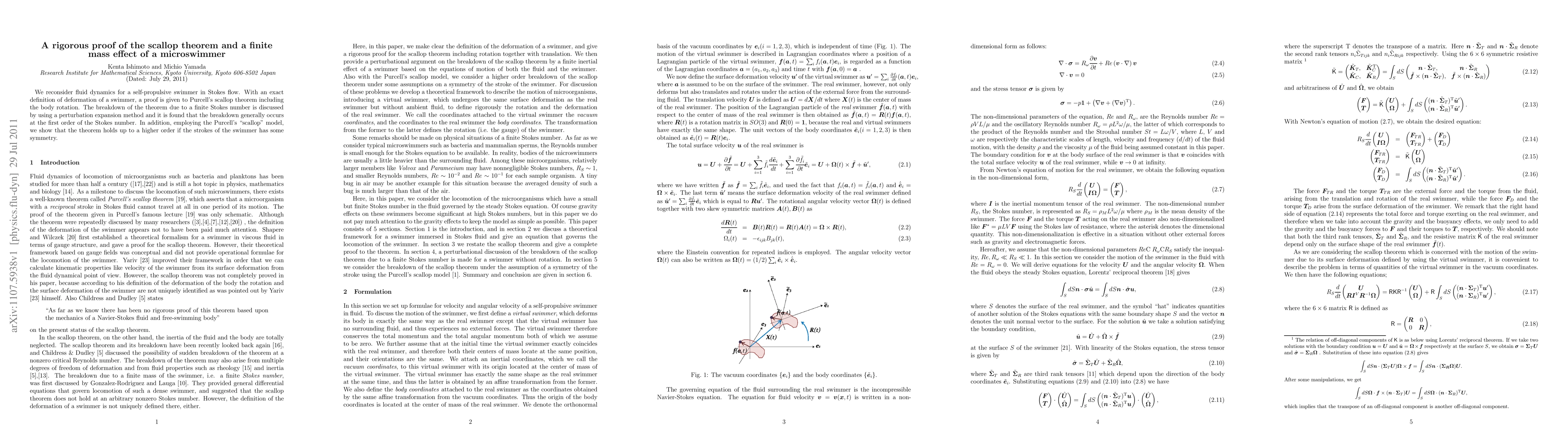 Researchers prove the scallop theorem in fluid dynamics for self-propelled swimmers, finding that symmetry in strokes can extend its validity, and it breaks down at low Stokes numbers with a finite mass effect.