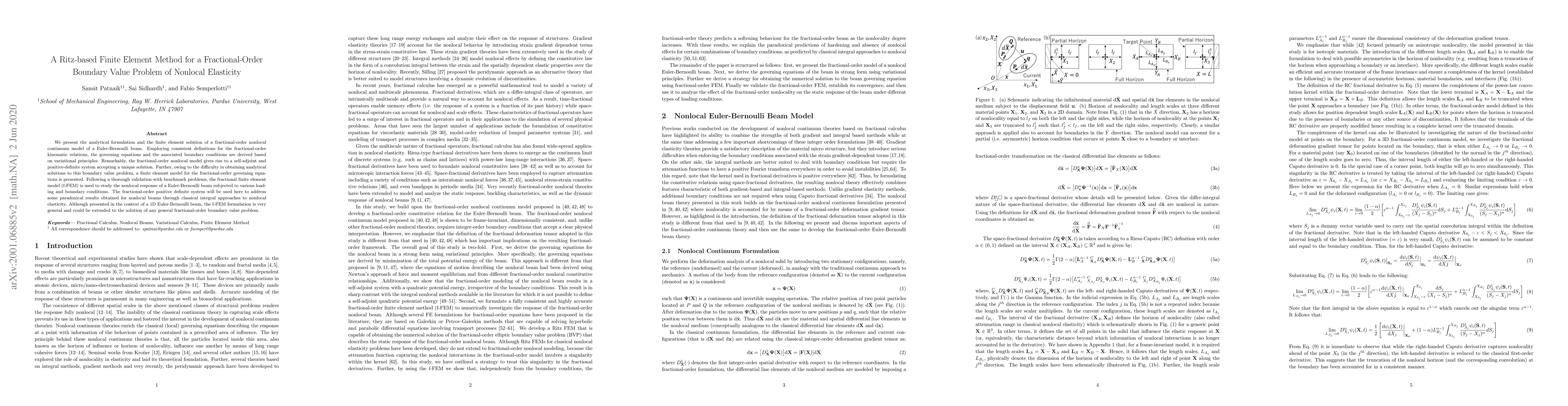 This paper introduces a Ritz-based finite element method for solving fractional-order nonlocal boundary value problems, specifically applied to Euler-Bernoulli beams. The method provides a self-adjoint and positive-definite system, validated through benchmark problems and used to analyze the nonlocal response of beams under various conditions.