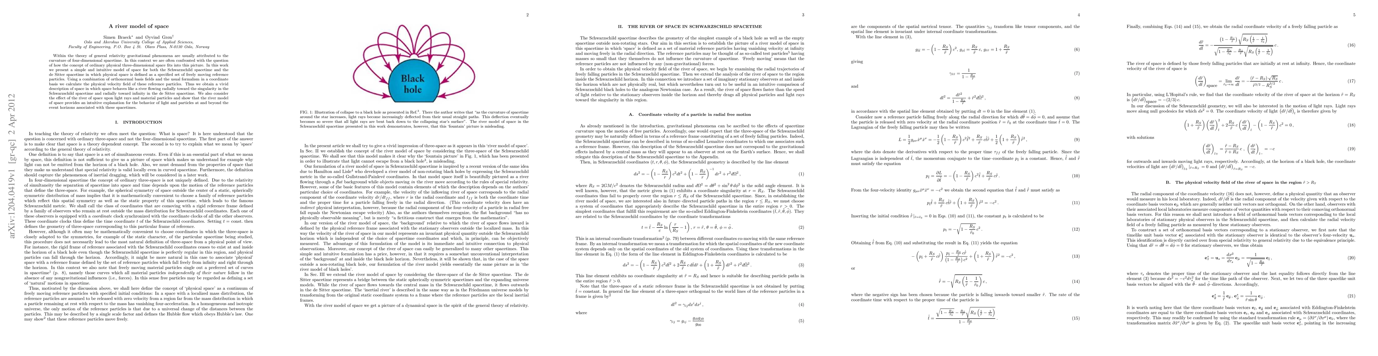 Researchers propose a 'river model' of space that describes physical space as freely moving reference particles, providing an intuitive explanation for light behavior at event horizons in Schwarzschild and de Sitter spacetimes.