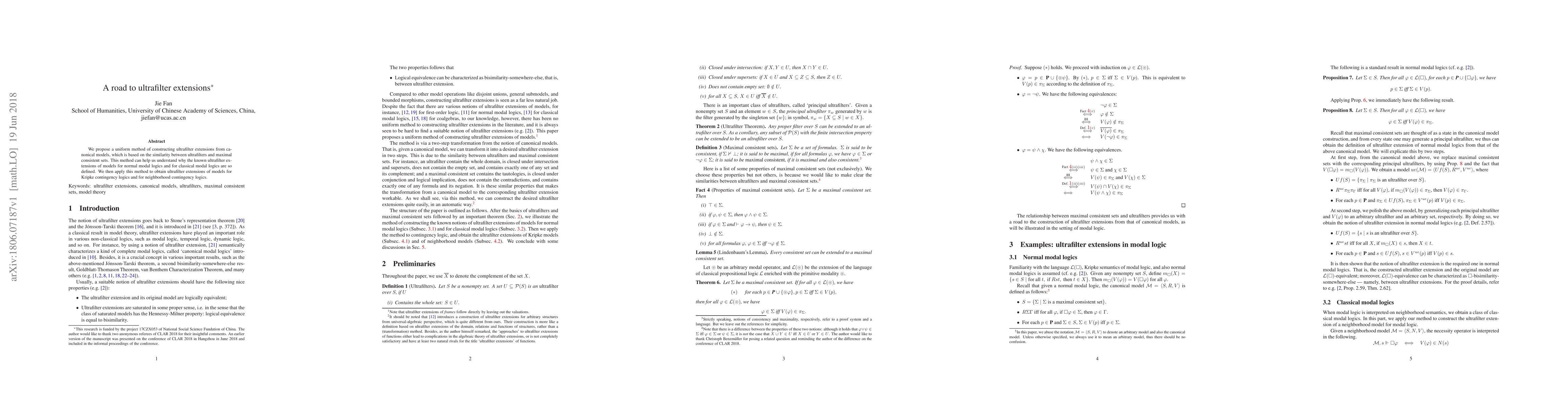 The paper proposes a uniform method for constructing ultrafilter extensions from canonical models, leveraging the similarity between ultrafilters and maximal consistent sets.
