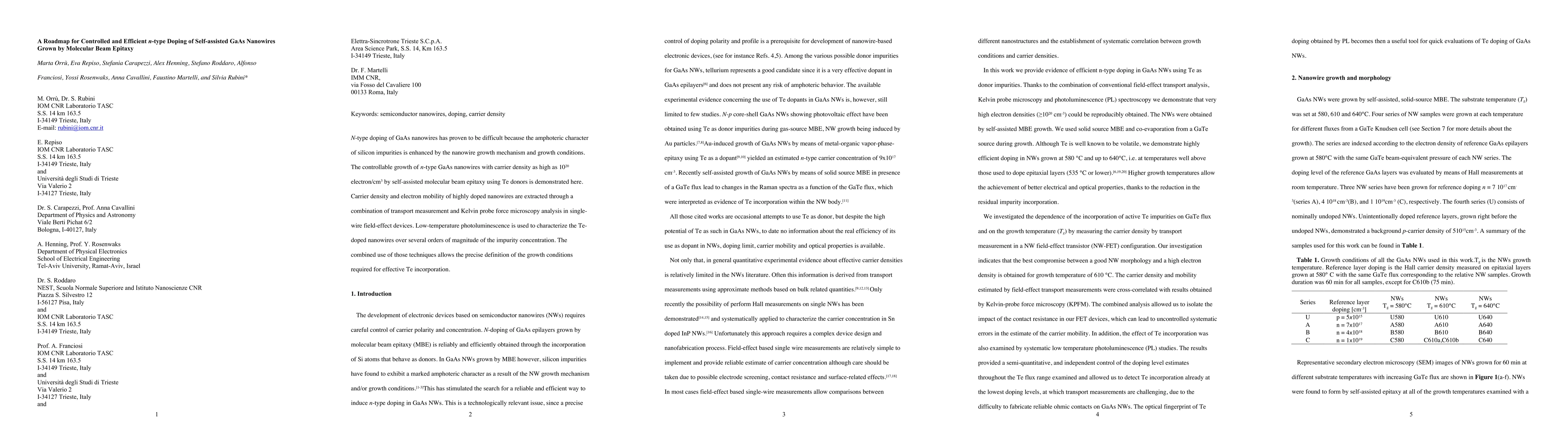 This paper presents a method for achieving controlled n-type doping in GaAs nanowires using Te donors, overcoming the challenges posed by silicon's amphoteric behavior in nanowire growth. The study demonstrates high carrier density and electron mobility through various characterization techniques, identifying optimal growth conditions for effective doping.