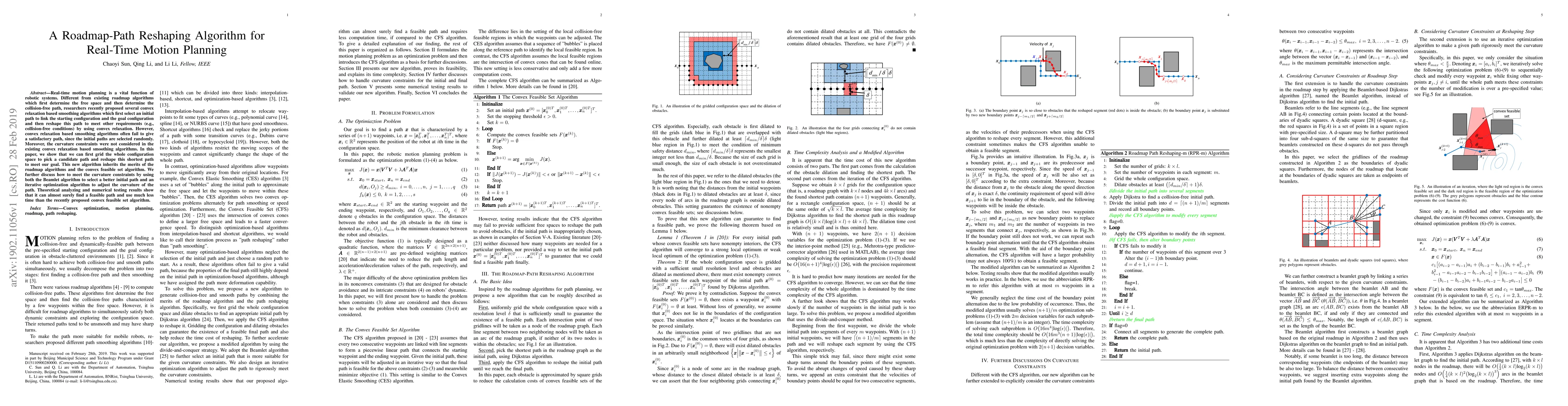 This paper presents a new roadmap-path reshaping algorithm for real-time motion planning that selects an initial path by gridding the configuration space and reshapes it to meet collision-free and curvature constraints. The algorithm improves upon convex relaxation methods by using the Beamlet algorithm for better initial path selection and iterative optimization for curvature adjustment, demonstrating faster and more reliable pathfinding.