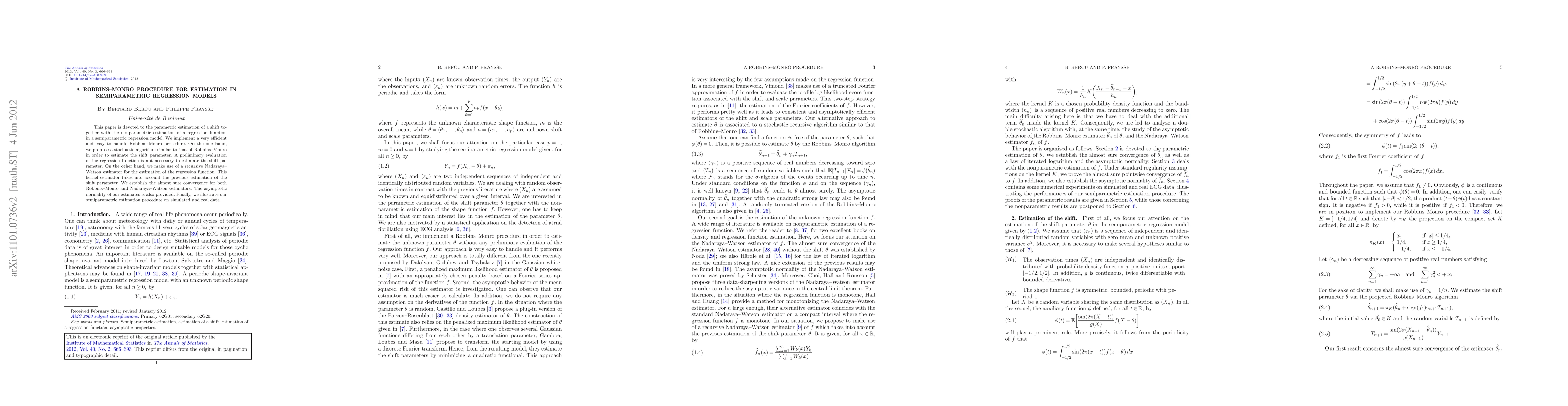 This paper proposes a Robbins-Monro procedure for estimating a shift parameter and a regression function in semiparametric regression models, using a stochastic algorithm for the shift and a recursive Nadaraya-Watson estimator for the regression function. The study establishes the almost sure convergence and asymptotic normality of the estimators and demonstrates the method on both simulated and real data.