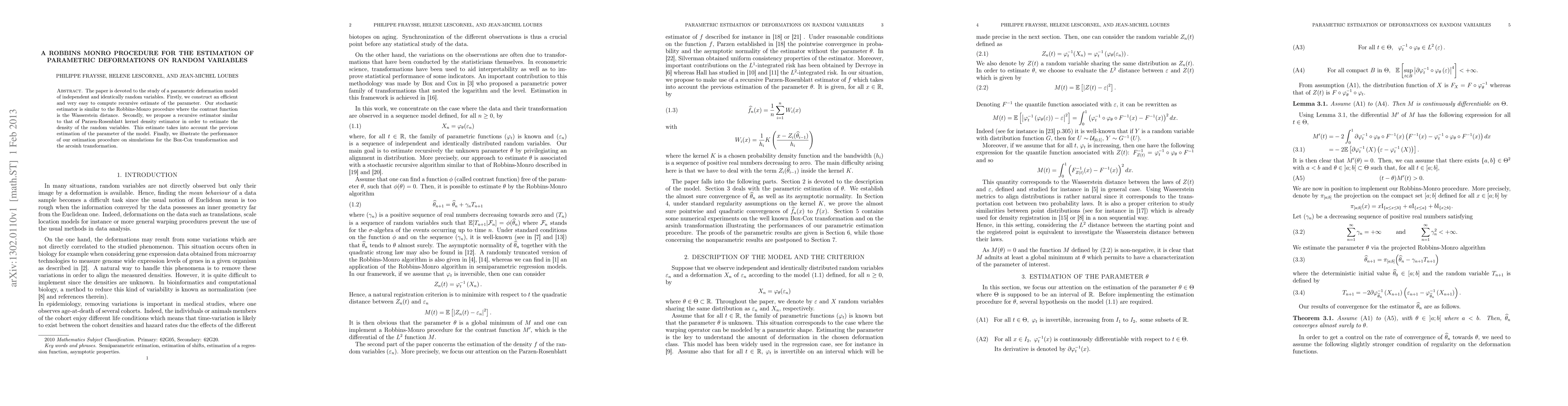 The paper is devoted to the study of a parametric deformation model of independent and identically random variables. Firstly, we construct an efficient and very easy to compute recursive estimate of the parameter. Our stochastic estimator is similar to the Robbins-Monro procedure where the contrast function is the Wasserstein distance. Secondly, we propose a recursive estimator similar to that of Parzen-Rosenblatt kernel density estimator in order to estimate the density of the random variables. This estimate takes into account the previous estimation of the parameter of the model. Finally, we illustrate the performance of our estimation procedure on simulations for the Box-Cox transformation and the arcsinh transformation.