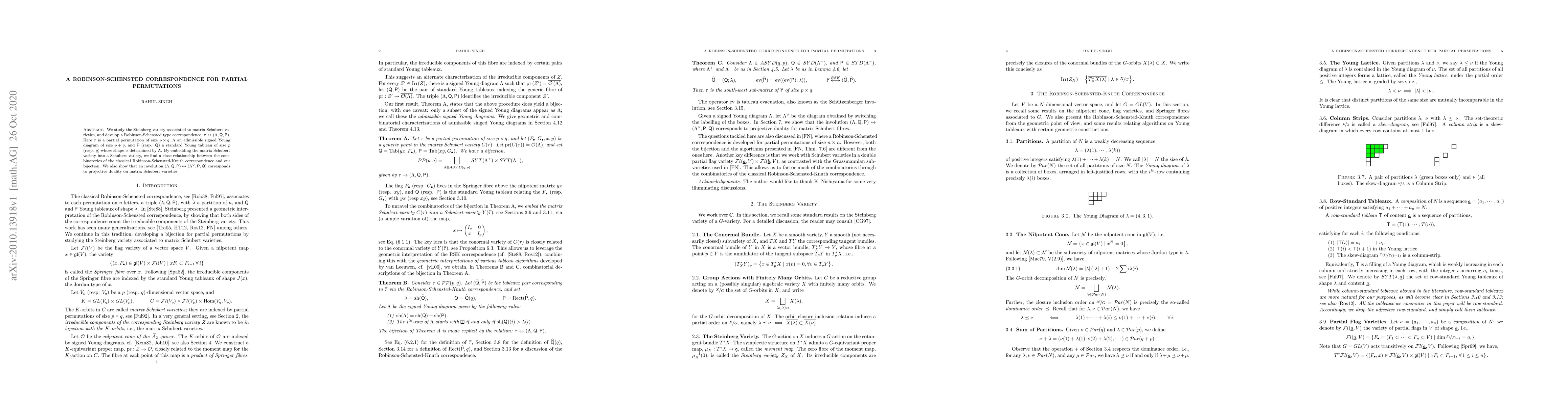 This paper develops a Robinson-Schensted type correspondence for partial permutations, establishing a bijection between partial permutations and a triple $(\Lambda, \mathsf{Q}, \mathsf{P})$ involving signed Young diagrams and standard tableaux. It also reveals a connection to projective duality on matrix Schubert varieties.