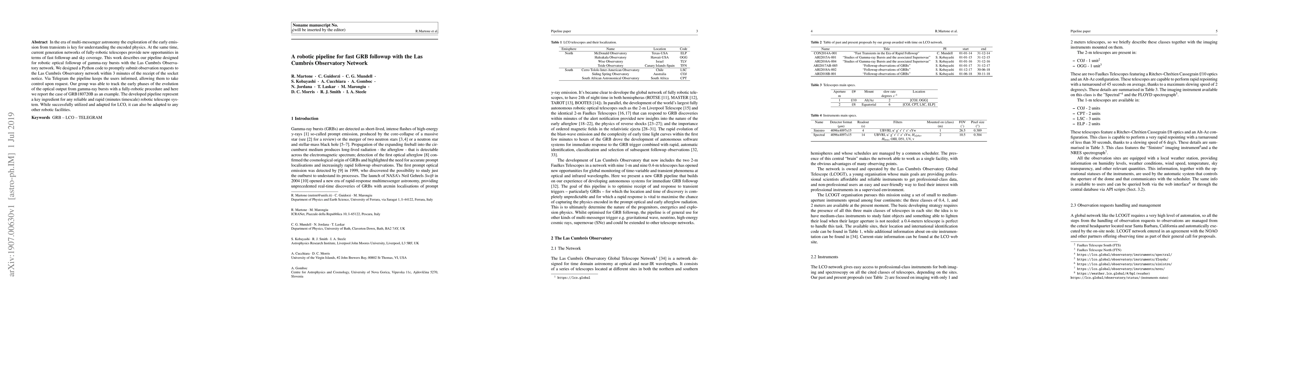 In the era of multi-messenger astronomy the exploration of the early emission from transients is key for understanding the encoded physics. At the same time, current generation networks of fully-robotic telescopes provide new opportunities in terms of fast followup and sky coverage. This work describes our pipeline designed for robotic optical followup of gamma-ray bursts with the Las Cumbres Observatory network. We designed a Python code to promptly submit observation requests to the Las Cumbres Observatory network within 3 minutes of the receipt of the socket notice. Via Telegram the pipeline keeps the users informed, allowing them to take control upon request. Our group was able to track the early phases of the evolution of the optical output from gamma-ray bursts with a fully-robotic procedure and here we report the case of GRB180720B as an example. The developed pipeline represent a key ingredient for any reliable and rapid (minutes timescale) robotic telescope system. While successfully utilized and adapted for LCO, it can also be adapted to any other robotic facilities.