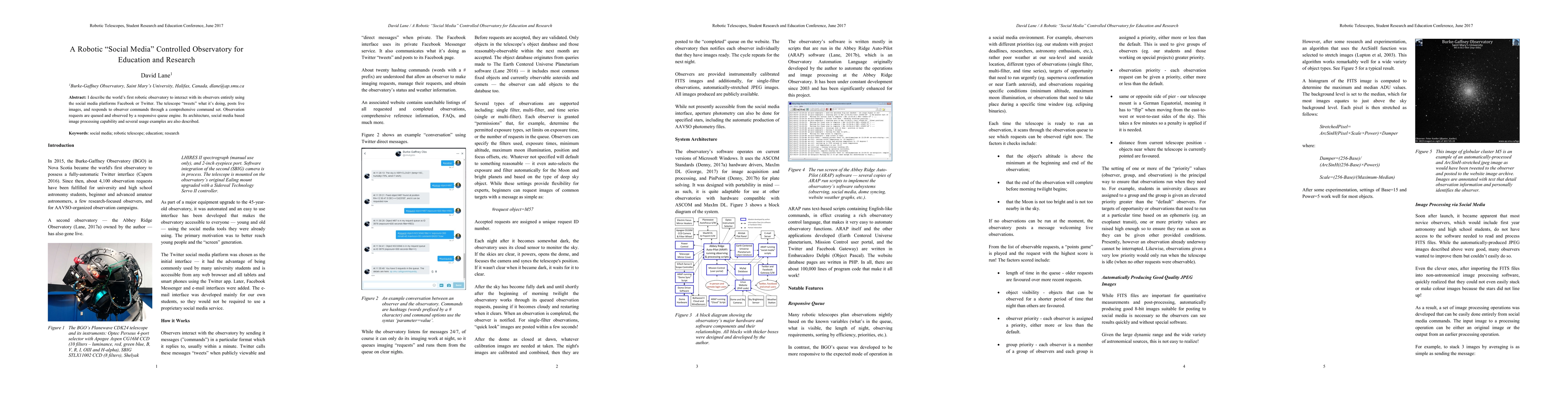 This paper introduces the world's first robotic observatory that uses social media for interaction, tweeting live images and responding to observer commands via Facebook or Twitter. It employs a responsive queue engine to manage observation requests and showcases its architecture and social media-based image processing.
