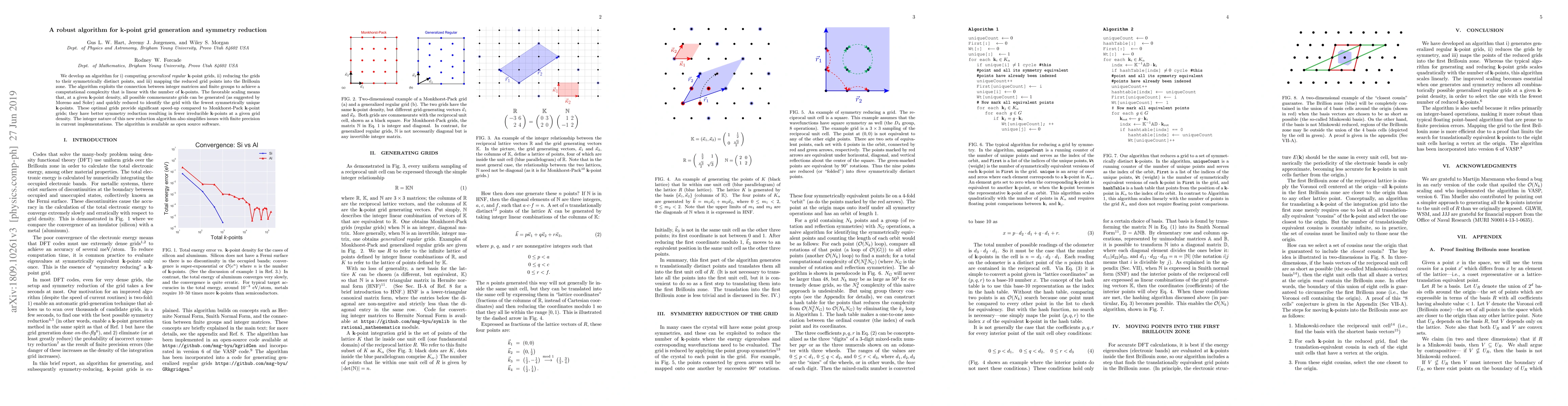 We develop an algorithm for i) computing generalized regular $k$-point grids, ii) reducing the grids to their symmetrically distinct points, and iii) mapping the reduced grid points into the Brillouin zone. The algorithm exploits the connection between integer matrices and finite groups to achieve a computational complexity that is linear with the number of $k$-points. The favorable scaling means that, at a given $k$-point density, all possible commensurate grids can be generated (as suggested by Moreno and Soler) and quickly reduced to identify the grid with the fewest symmetrically unique $k$-points. These optimal grids provide significant speed-up compared to Monkhorst-Pack $k$-point grids; they have better symmetry reduction resulting in fewer irreducible $k$-points at a given grid density. The integer nature of this new reduction algorithm also simplifies issues with finite precision in current implementations. The algorithm is available as open source software.
