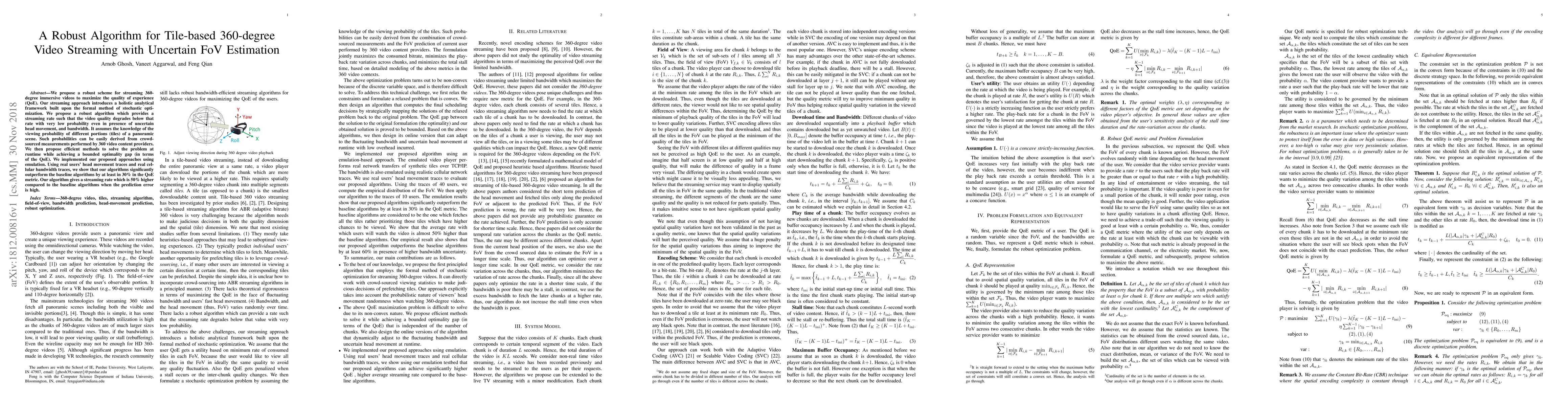 A new algorithm for streaming 360-degree videos improves video quality while minimizing degradation under uncertain head movement and varying bandwidth conditions, outperforming baseline algorithms by at least 30%.