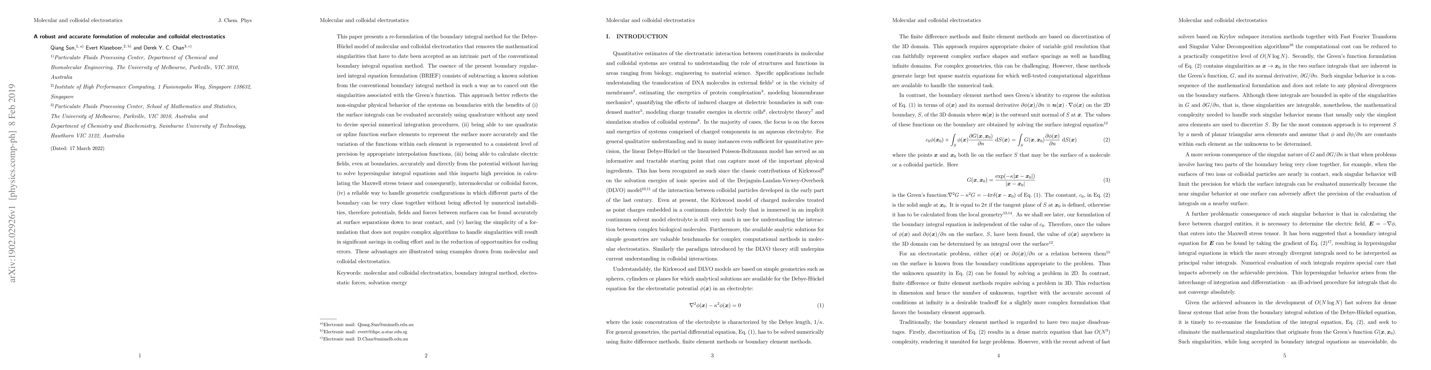 This paper reformulates the boundary integral method for electrostatics, removing mathematical singularities and enabling accurate evaluation of surface integrals, precise representation of electric fields, and reliable handling of close boundary configurations, all without requiring complex algorithms. The new method enhances precision in calculating forces and stress tensors in molecular and colloidal systems.