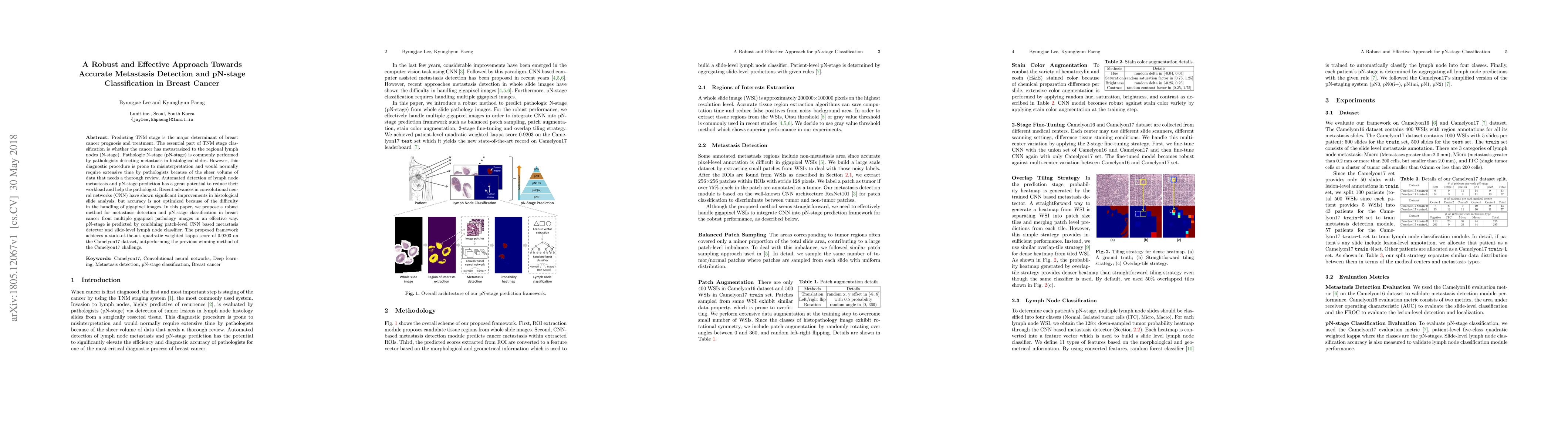 This paper proposes a robust method for detecting metastasis and classifying pN-stage in breast cancer using convolutional neural networks (CNN). The method combines a patch-level metastasis detector with a slide-level lymph node classifier, achieving a state-of-the-art performance with a kappa score of 0.9203 on the Camelyon17 dataset.