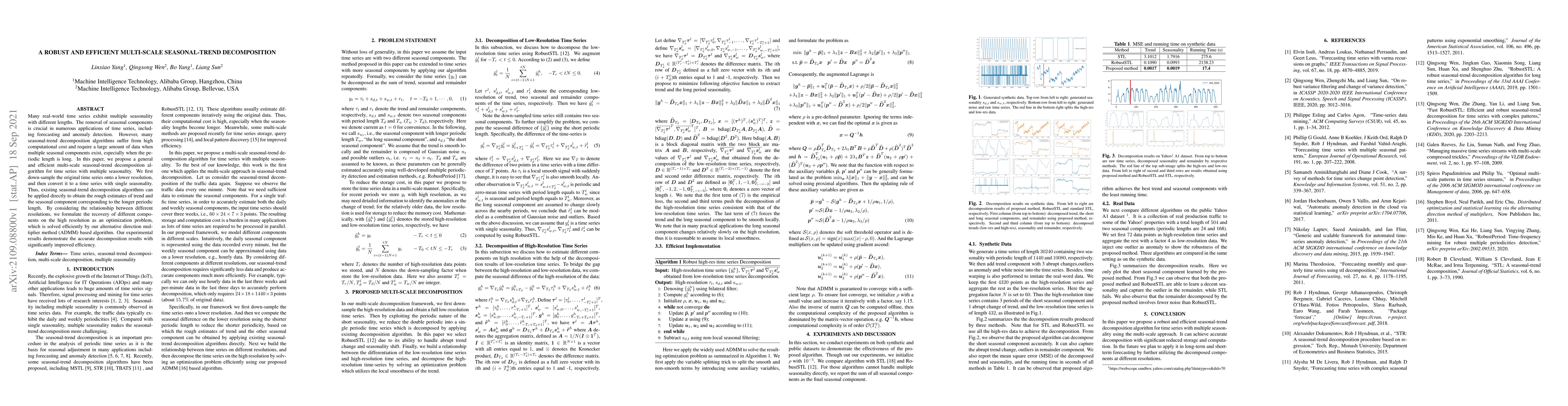 This paper proposes a multi-scale seasonal-trend decomposition algorithm to efficiently decompose time series with multiple seasonal components, addressing the computational challenges of existing methods. The algorithm leverages down-sampling and optimization to achieve accurate decomposition with improved efficiency.