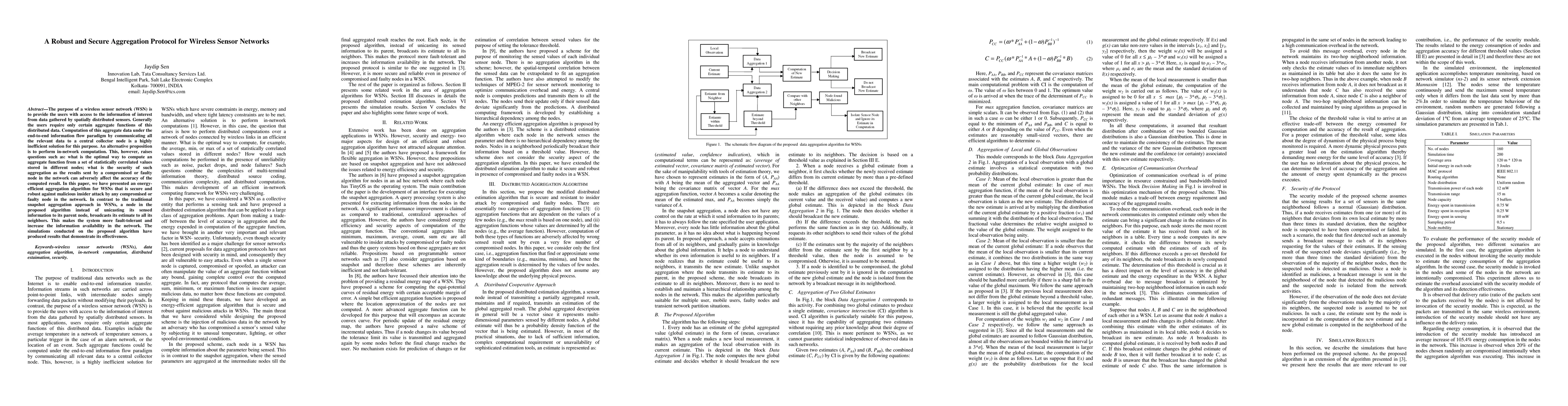 The purpose of a wireless sensor network (WSN) is to provide the users with access to the information of interest from data gathered by spatially distributed sensors. Generally the users require only certain aggregate functions of this distributed data. Computation of this aggregate data under the end-to-end information flow paradigm by communicating all the relevant data to a central collector node is a highly inefficient solution for this purpose. An alternative proposition is to perform in-network computation. This, however, raises questions such as: what is the optimal way to compute an aggregate function from a set of statistically correlated values stored in different nodes; what is the security of such aggregation as the results sent by a compromised or faulty node in the network can adversely affect the accuracy of the computed result. In this paper, we have presented an energy-efficient aggregation algorithm for WSNs that is secure and robust against malicious insider attack by any compromised or faulty node in the network. In contrast to the traditional snapshot aggregation approach in WSNs, a node in the proposed algorithm instead of unicasting its sensed information to its parent node, broadcasts its estimate to all its neighbors. This makes the system more fault-tolerant and increase the information availability in the network. The simulations conducted on the proposed algorithm have produced results that demonstrate its effectiveness.