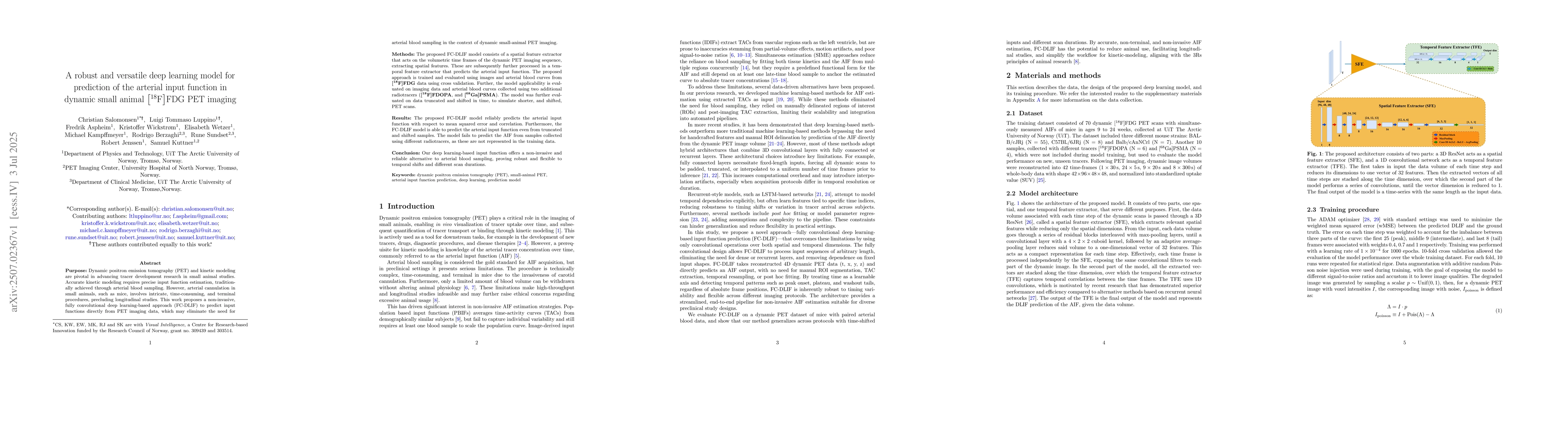 This research introduces a deep learning model, FC-DLIF, to predict arterial input functions in small animal PET scans, eliminating the need for invasive blood sampling. The model is robust to temporal shifts and different scan durations, demonstrated through testing with various radiotracers and manipulated data, though it requires training data specific to each tracer.