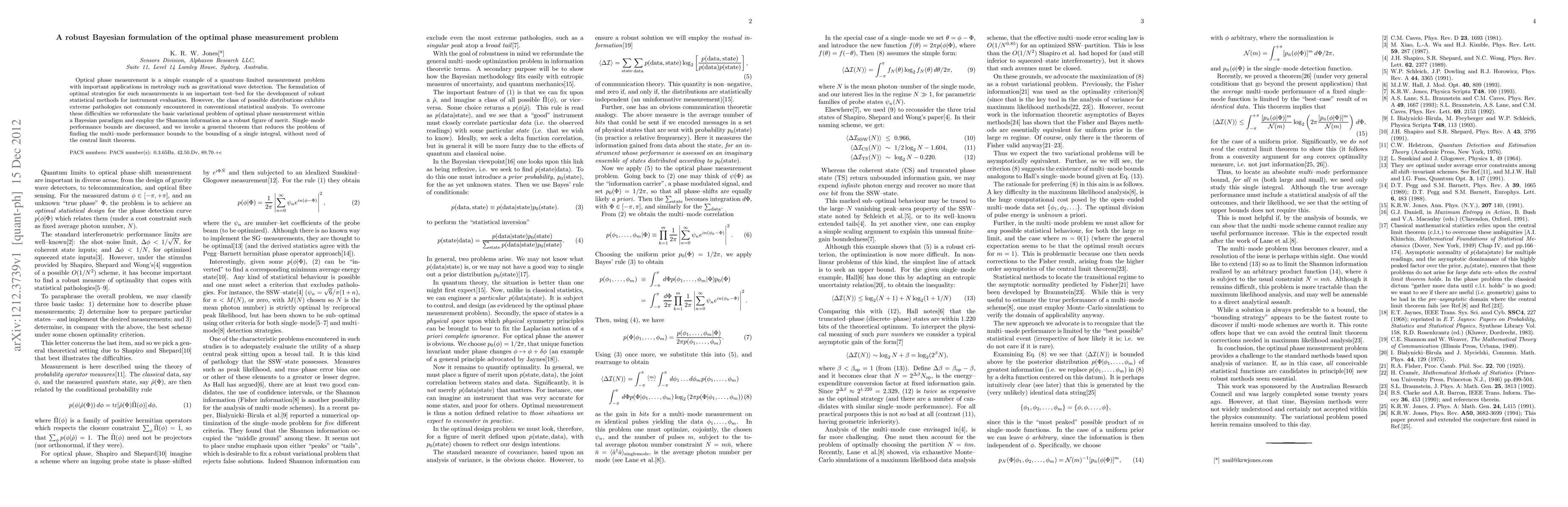 Optical phase measurement is a simple example of a quantum--limited measurement problem with important applications in metrology such as gravitational wave detection. The formulation of optimal strategies for such measurements is an important test-bed for the development of robust statistical methods for instrument evaluation. However, the class of possible distributions exhibits extreme pathologies not commonly encountered in conventional statistical analysis. To overcome these difficulties we reformulate the basic variational problem of optimal phase measurement within a Bayesian paradigm and employ the Shannon information as a robust figure of merit. Single-mode performance bounds are discussed, and we invoke a general theorem that reduces the problem of finding the multi-mode performance bounds to the bounding of a single integral, without need of the central limit theorem.