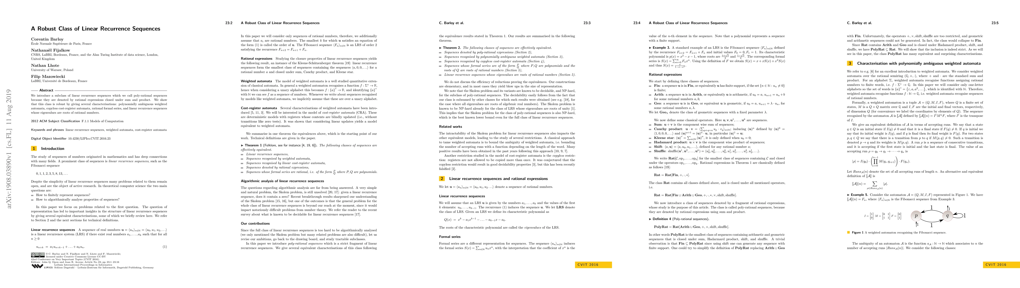 Summary: This paper introduces poly-rational sequences, a robust subclass of linear recurrence sequences characterized by their representation through rational expressions. The robustness is demonstrated through various equivalences, including polynomially ambiguous weighted automata and copyless cost-register automata.