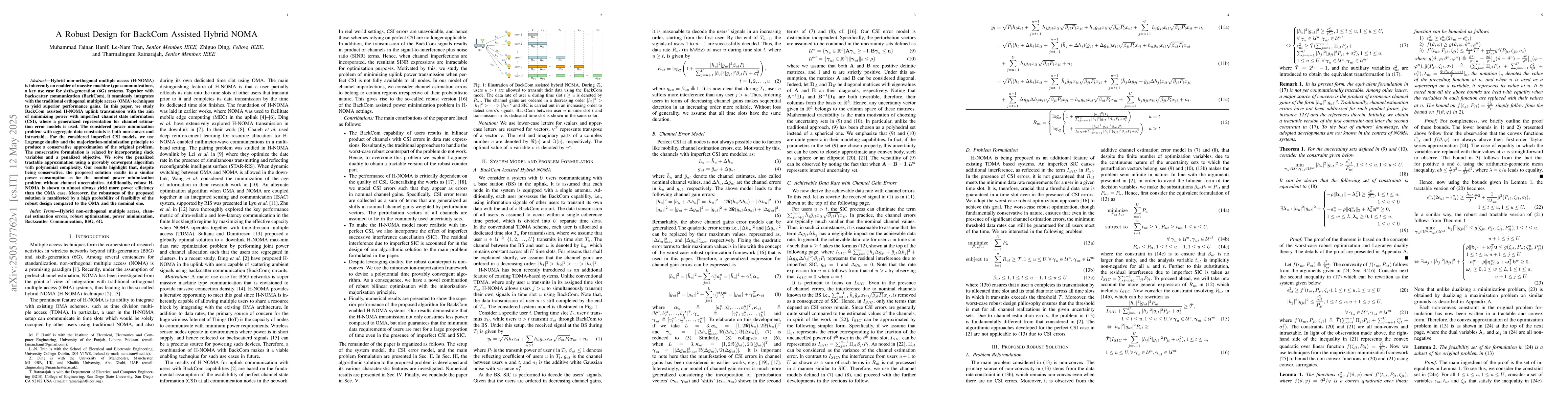 The paper presents a conservative approximation method using Lagrange duality and the majorization-minimization principle for the power minimization problem in BackCom assisted H-NOMA with imperfect CSI, followed by a tractable solution via a provably convergent algorithm.