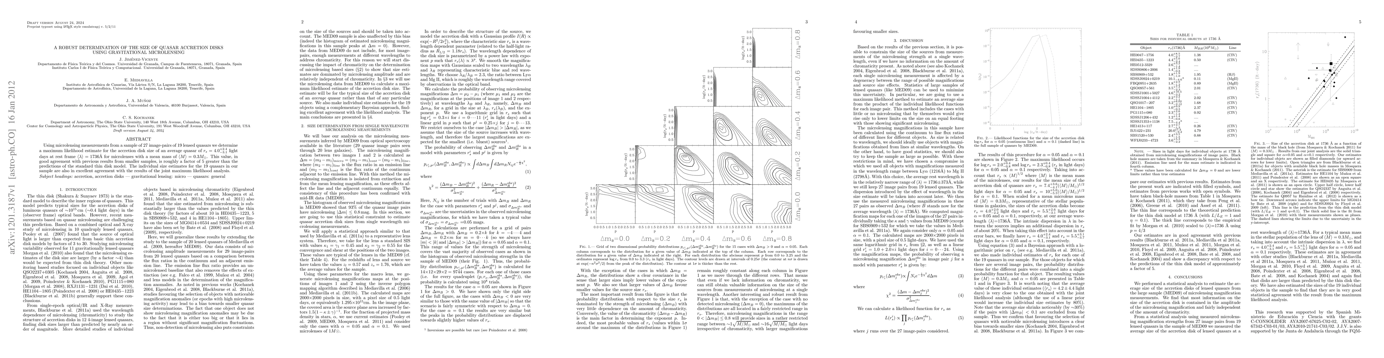 quasars we determine a maximum likelihood estimate for the accretion disk size