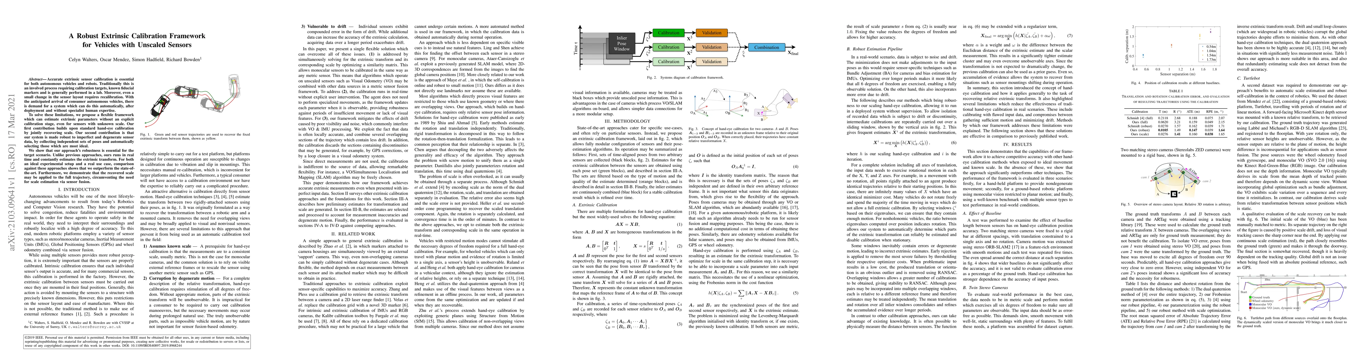 Accurate extrinsic sensor calibration is essential for both autonomous vehicles and robots. Traditionally this is an involved process requiring calibration targets, known fiducial markers and is generally performed in a lab. Moreover, even a small change in the sensor layout requires recalibration. With the anticipated arrival of consumer autonomous vehicles, there is demand for a system which can do this automatically, after deployment and without specialist human expertise. To solve these limitations, we propose a flexible framework which can estimate extrinsic parameters without an explicit calibration stage, even for sensors with unknown scale. Our first contribution builds upon standard hand-eye calibration by jointly recovering scale. Our second contribution is that our system is made robust to imperfect and degenerate sensor data, by collecting independent sets of poses and automatically selecting those which are most ideal. We show that our approach's robustness is essential for the target scenario. Unlike previous approaches, ours runs in real time and constantly estimates the extrinsic transform. For both an ideal experimental setup and a real use case, comparison against these approaches shows that we outperform the state-of-the-art. Furthermore, we demonstrate that the recovered scale may be applied to the full trajectory, circumventing the need for scale estimation via sensor fusion.