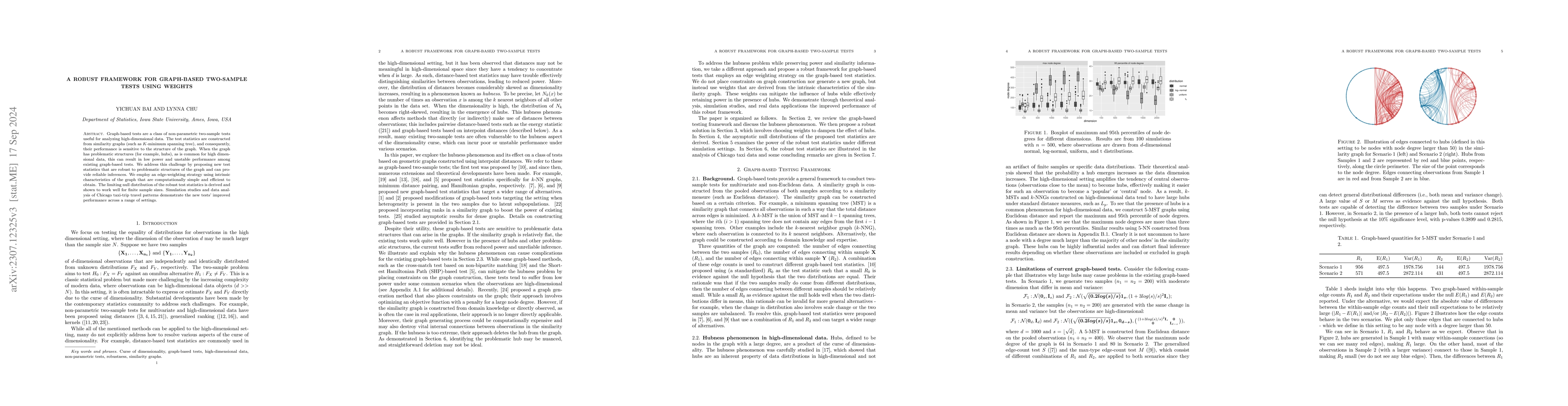 This paper presents a robust framework for graph-based two-sample tests that addresses instability in high-dimensional data scenarios. The proposed test statistics are designed to be robust to problematic graph structures, and their performance is demonstrated through simulations and a real-world application on Chicago taxi trip data.