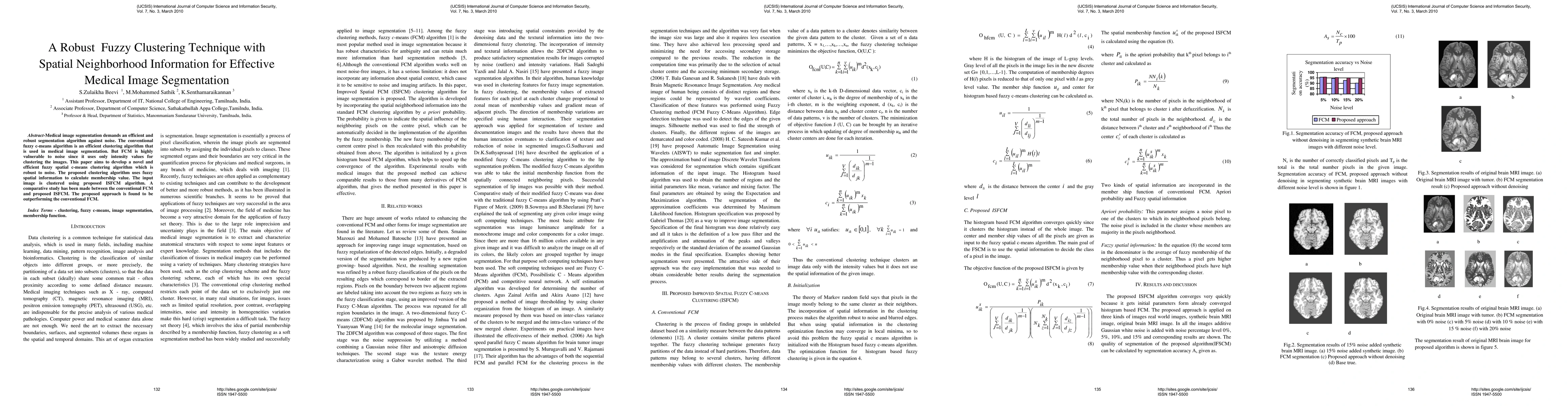 This paper introduces a robust fuzzy spatial c-means clustering algorithm (ISFCM) for medical image segmentation, enhancing noise resistance by incorporating spatial neighborhood information. Comparative studies show that the ISFCM outperforms the conventional fuzzy c-means algorithm in segmentation accuracy.