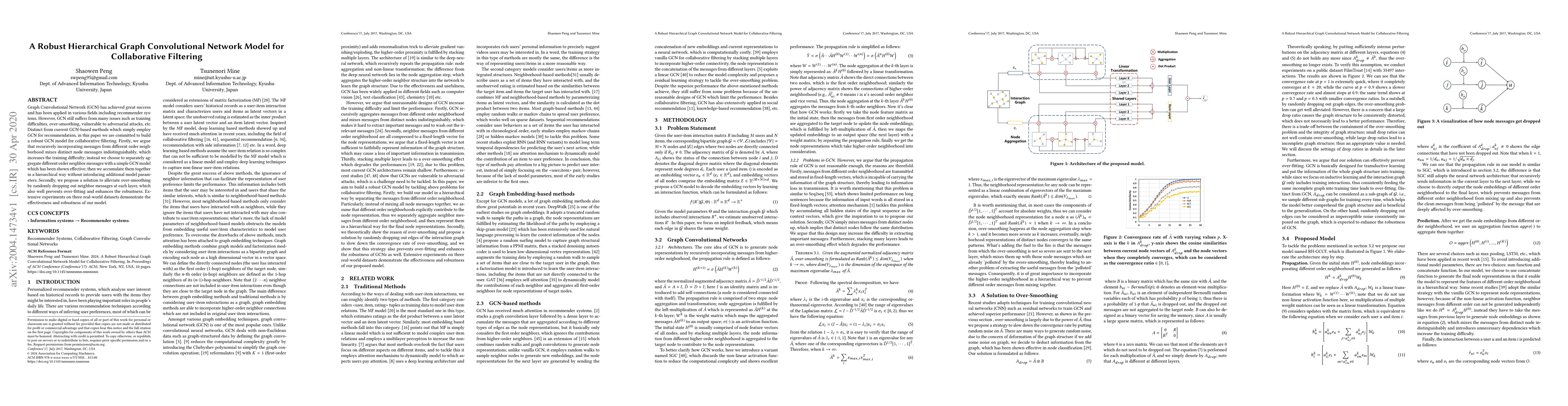 This paper proposes a robust Hierarchical Graph Convolutional Network model for collaborative filtering, addressing issues like over-smoothing and training difficulties through hierarchical aggregation and message dropout.